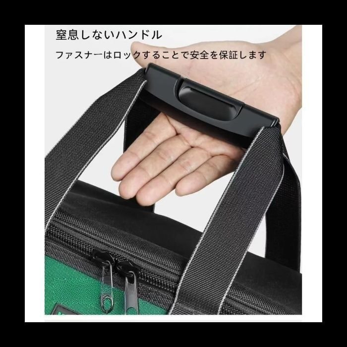特徴 全体的な生地もかなり頑丈、お気に入りのツールを収納して保護することができます。 がま口タイプ、ガバっと大きく広がる口で工具の出し入れ、中の確認がしやすいです。 大容量スペースと様々なポケットでご愛用の工具を収納?管理するには最適です。 付属のショルダーベルトで肩掛けも可能です。ショルダーベルトには肩への負担を軽減する柔らかいパッドを採用していて持ち運びにとても便利です。 電気技師、大工職人、職人、HVAC技術者、メカニック、配管工、乾式壁作業員、庭師などに最適です。 ★商品情報★ 素材:1680Dオクスフォード 生産ロットにより柄の出方や色の濃淡が異なる場合がございます。 お使いのモニターや撮影時の光の加減などにより 画像と実際の商品のカラーが異なる場合もございます。 予告なしにカラーやデザインなどの変更がある場合もございます。 ※サイズは・実寸サイズを測っているため多少誤差1-3cmがでる場合があります。 多機能ツールバッグ工具バッグ1680Dオクスフォード防水耐久耐摩耗大容量ショルダーベルト付きツールバッグ