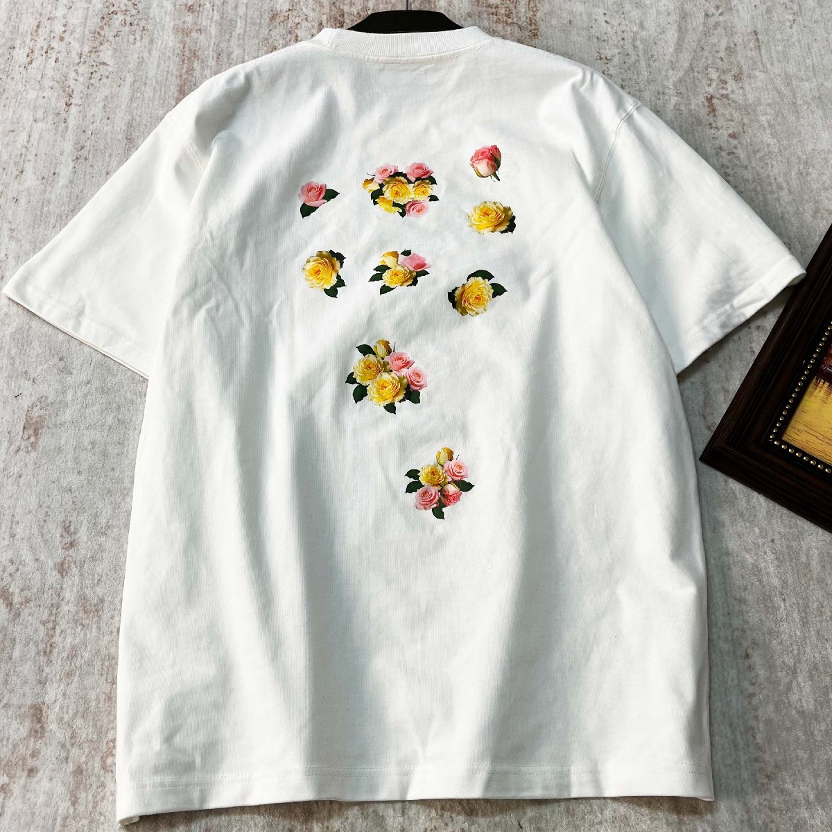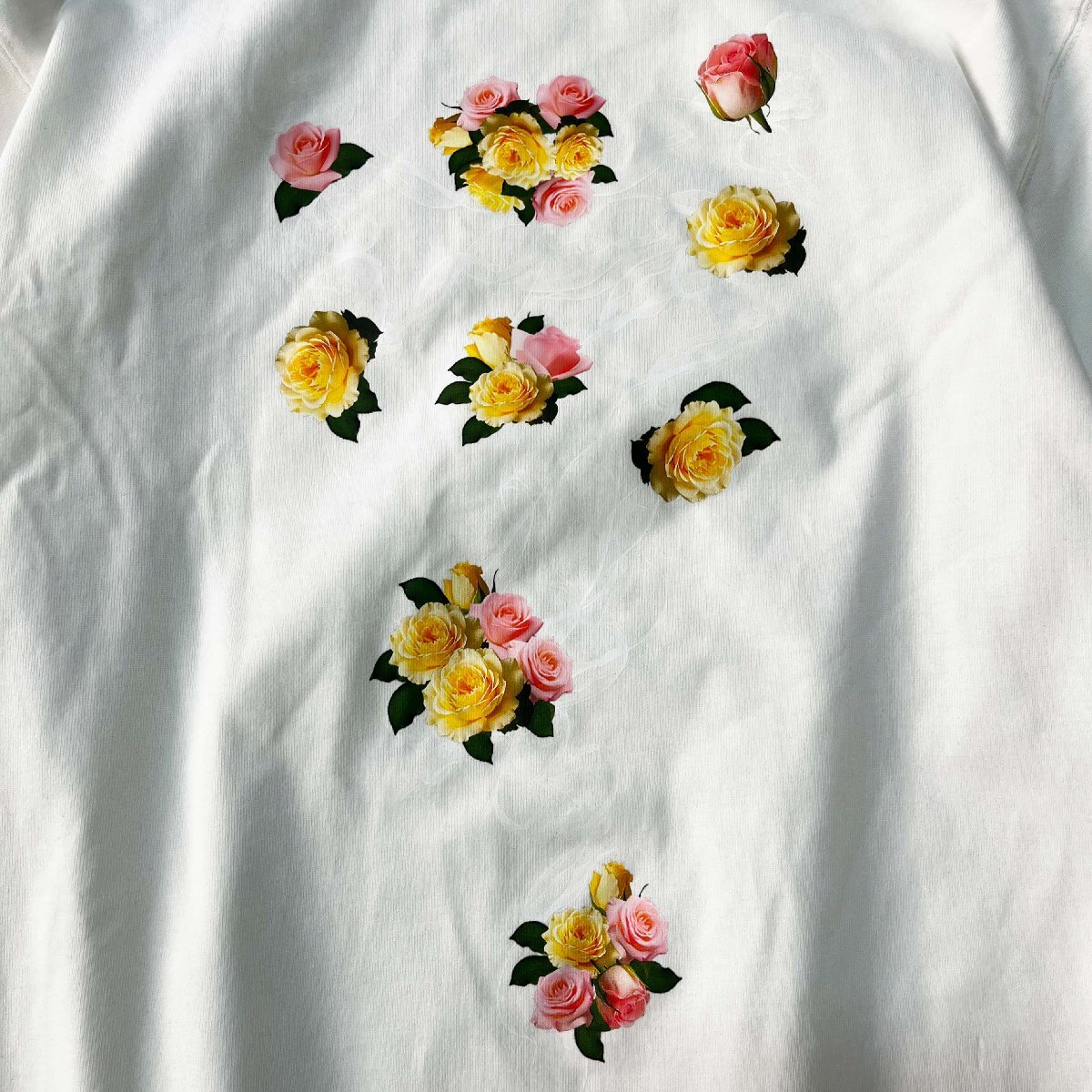 フロントとバックに薔薇のプリントをあしらい、シンプルながらも程よい存在感のあるデザインに仕上げました。ゆったりとしたシルエットで、動きやすく、リラックス感のある着心地を提供します。個性な花柄とクルーネックデザインで、どんなスタイリングにもマッチします。