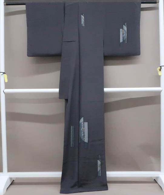 リサイクル商品ではございますが、大変良い状態のお品です。 地色は 灰黒です。 1枚目の画像が近いお色かと思われます。 素材は正絹です。 |