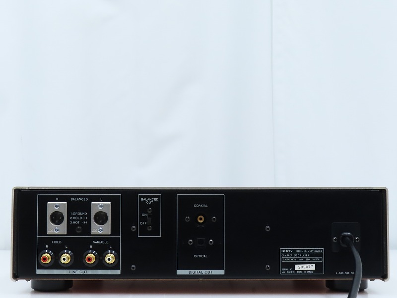 ■メーカー : SONY ■型番 : CDP-XA7ES ■外径寸法 : W430×H125×D375mm ■重量 : 15kg 【商品の状態 当店での確認内容】 基本動作確認済み 「商品の状態」に関しましては当方主観の目安となります。外観などは中古品で個人差もありますので詳細は画像にてご判断ください。 画像にて不明な点はご質問下さい。 出品商品は画像のものですべてになります。画像に写っているもの以外は付属いたしません。 ※注意※ ヤフオクのシステム上、送料表記が送料未定となっておりますが、送料に関しては全て有償となりますので下記を参照下さい。 【送料 全国一律 2,080 円 沖縄、離島は別途お見積り】 ※送料がお得になるサービスです(下取りシステムのご案内です) 当ストアでは商品を安全にお届け出来るよう提携運送会社と協議の上、発泡緩衝材や強度段ボールの使用等 運送会社が指定する梱包方法や資材を採用しております。 より安全にお届け出来るよう商品仕様により梱包サイズが大きくなる場合や個口数が増える事がございます。 【当ストアオークションルールを入札前に必ずご確認ください。】 【落札後の取引手順】 ・落札後は取引ナビにて、必要事項をご入力後、送信ください。 取引終了後48時間(土、日は除く)以内に入力をお願い致します。 ※ご連絡が頂けない場合は落札者様都合でのキャンセルとさせていただきます。 ・落札代金(商品代金+消費税+送料)の入金をお願い致します。 ※大型商品の場合は送料確定後の決済となる為取引ナビを入力頂き、当ストアより送料のご案内が来るまでお待ちください。(土曜、日曜、祝日の場合は翌営業日より順次ご案内いたします) ・お支払い方法は※クレジットカード/※PayPay残高/※PayPayクレジット/PayPay銀行/ゆうちょ銀行のみです。 ※商品代金引換(代引き)のお取り扱いはしておりません。 ※領収証の発行が必要な方はご連絡ください。 ※銀行振込の際の振込手数料はご負担願います。 ・入金確認後に出荷手配を致します。 (原則入金確認後3営業日以内に発送いたしますが、大型や重量のある製品はお時間をいただく場合もございます。) ・発送は当店指定の運送会社の元払いのみでの発送となります。 ※他の運送会社、送料代引き等は致しかねます。 ※落札者様ご自身での運送会社の手配いただく事も可能ですが荷物事故の責任の所在の問題上、梱包は致しかねます。 ※店頭にお越し頂き手渡しも可能(福岡市早良区)です。ご希望の方はご落札後にご連絡下さい。 ・大型/重量物商品の送料につきましては商品の特性上、荷降ろし状況等により送料が大きく前後し運送業者に別途見積りが必要な為、早めのお問い合わせにてお見積り上、入札をお願い致します。 【初期不良の保証について】 ・商品到着後の初期動作不良、また配送中の事故による破損、不具合が有る場合は、商品発送後10日以内に当ストアまでご連絡ください。当ストアでは修理での対応を優先させて頂きますが、修理不可の場合は全額返金させて頂きます。 (商品代金+消費税+送料のお支払い頂いた金額となります) 【初期不良の保証の対象外について】 次の場合は保証の対象外となりますのご留意ください ・ジャンク商品、現状商品、難あり商品での出品商品。 ※難あり商品に関しましては動作確認時に一部動作不良が確認された商品になり、記載している動作確認以外にも、動作不良がある可能性もございます。こちらに関しましても保証対象外となりますことをご理解ください。 ・年代物のオーディオなどで、当店にてわからない範囲で部品が交換されている場合 ・楽器類の特殊機材(マイクロスコープ等)での確認までは行っておりません。気になる方は事前にご質問いただくか、入札をお控えください。 ※初期不良に関しましては【商品の状態】に記載のもの、またそれによって起因する動作不良は対象外です。 ※商品発送後10日を過ぎてのご連絡は対応が出来ませんので、商品が到着しましたらお早めに確認をお願い致します。 【メーカー保証の加入・継承】 ・未使用品、展示品やメーカー保証期間が残っている商品に関しまして、メーカー保証の加入、継承が必要な方は、落札後取引ナビ内にて当ストアにお知らせください。商品発送までにご連絡いただけない場合、メーカー保証の手続きを承れない場合があります。 【評価について】 ・評価不要の場合、必ず取引ナビの「要望欄」にてお知らせください。それ以外でご連絡をいただいた場合、対応できない可能性がございます。一度行った評価はシステム上取り消しが行えませんのでご了承ください。 【入札削除・キャンセルについて】 ・入札後はトラブル防止の為いかなる事情がおきましても入札を削除等は致しておりません。 ご検討の上入札をお願い致します。間違った際の入札額の金額訂正はご自身で行ってください。 入札額の変更方法 【入札に関しての注意事項】 ・最近イタズラ入札が多く見られるため、新規IDや悪い評価が一定数あるIDか