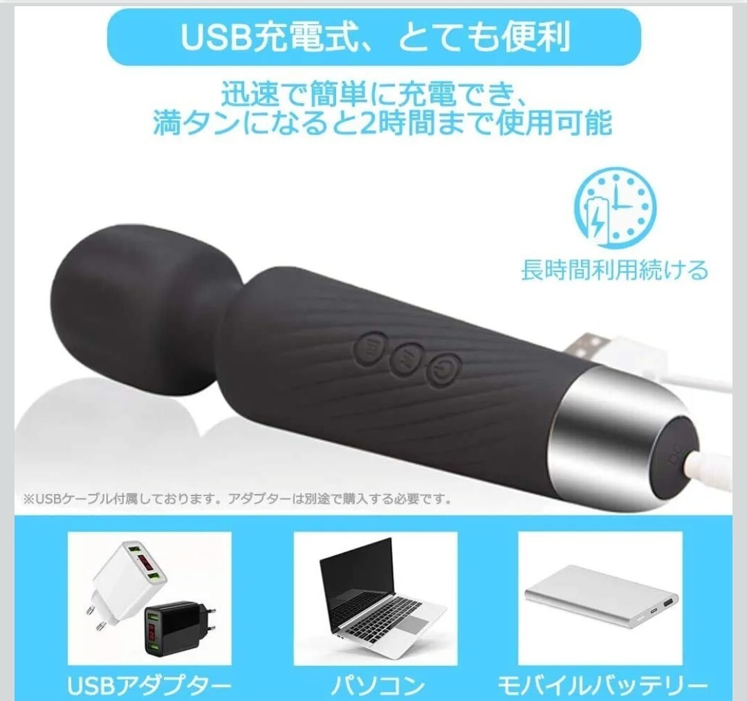 【新品】Raykel 電動マッサージャー 強力振動 コードレス USB充電式