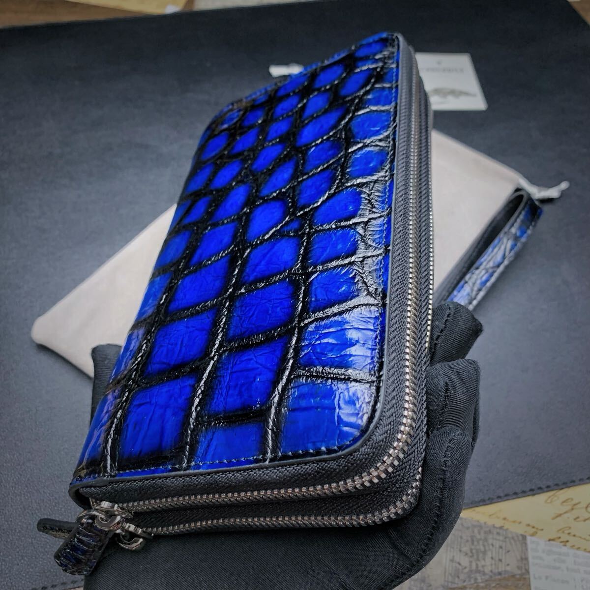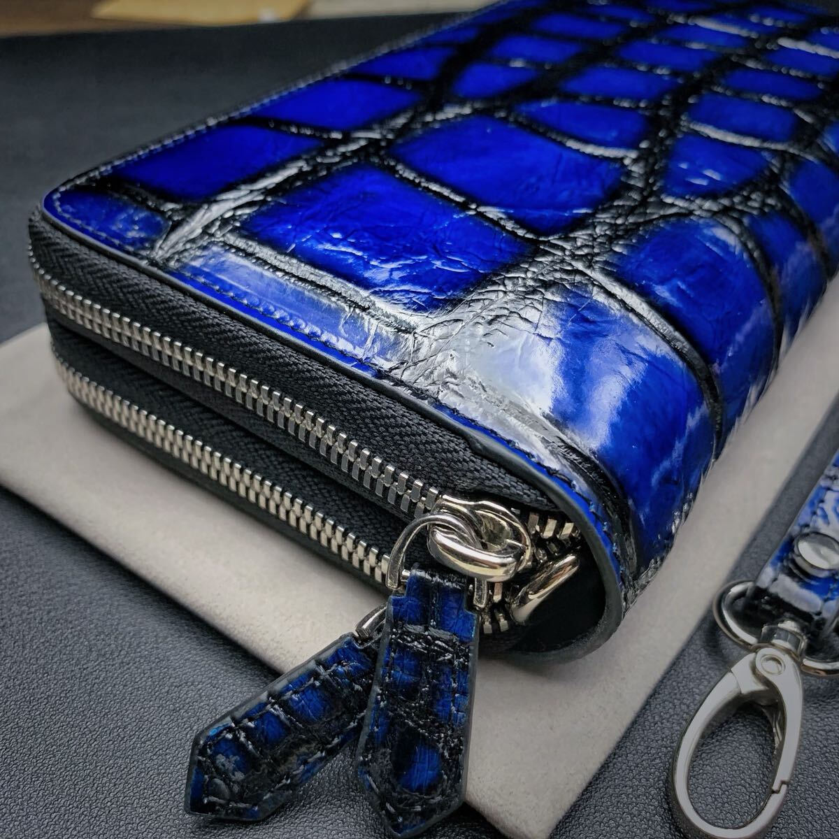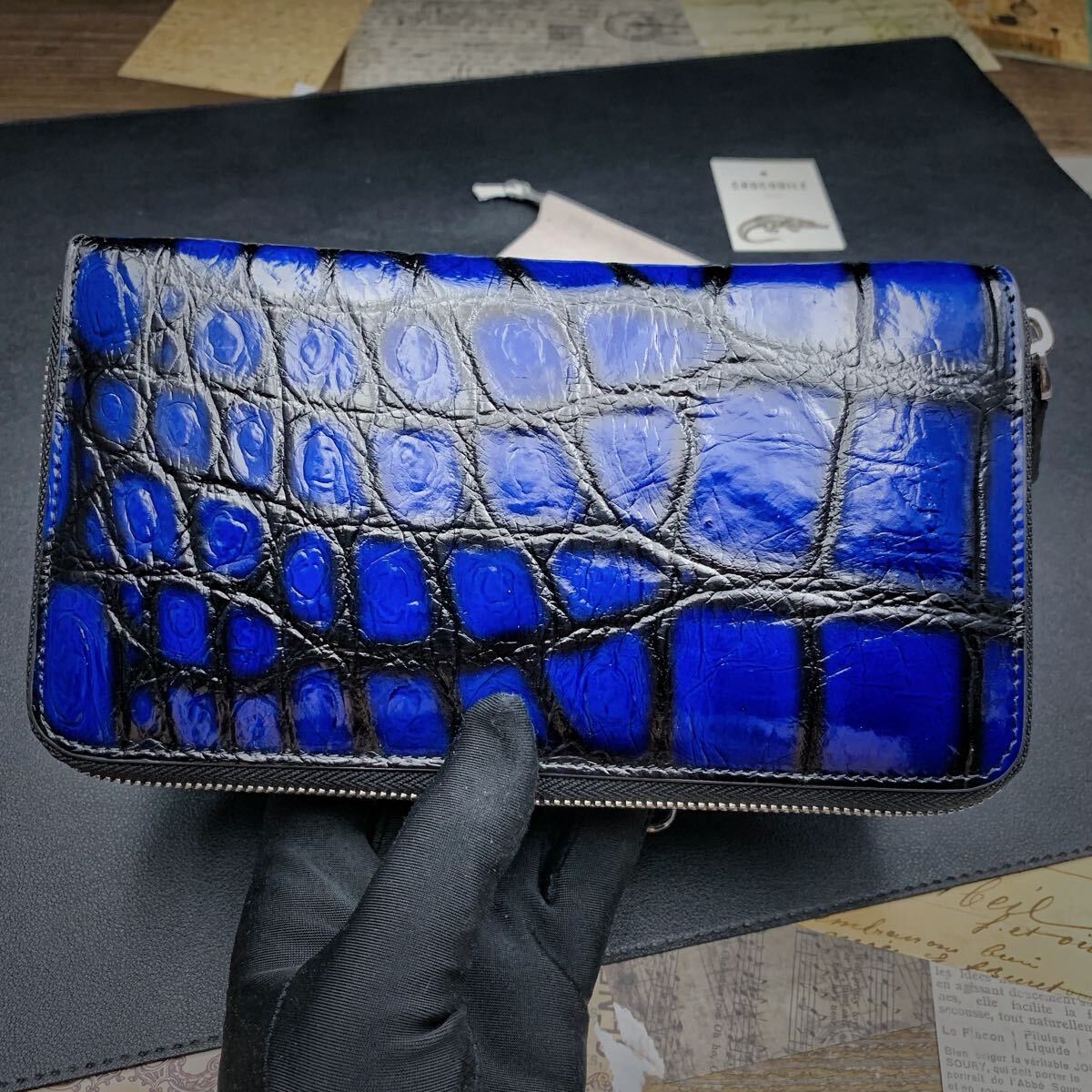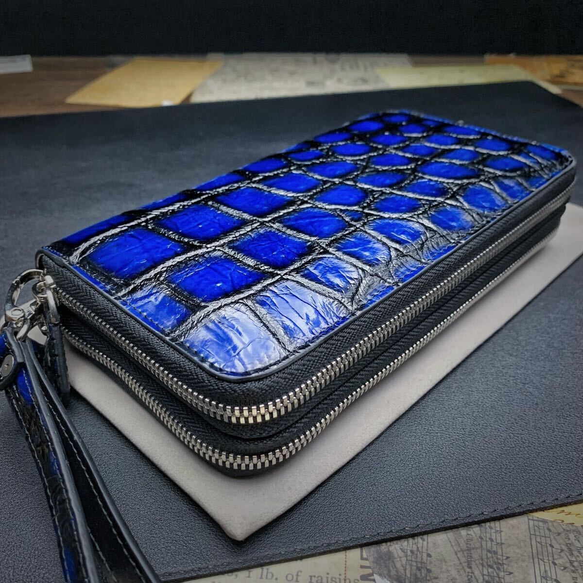 【実物撮影】新品 クロコダイル メンズ 長財布 ラウンドファスナー 未使用 腹革 ワニ 希少手染め色 ダブルファスナー 長財布