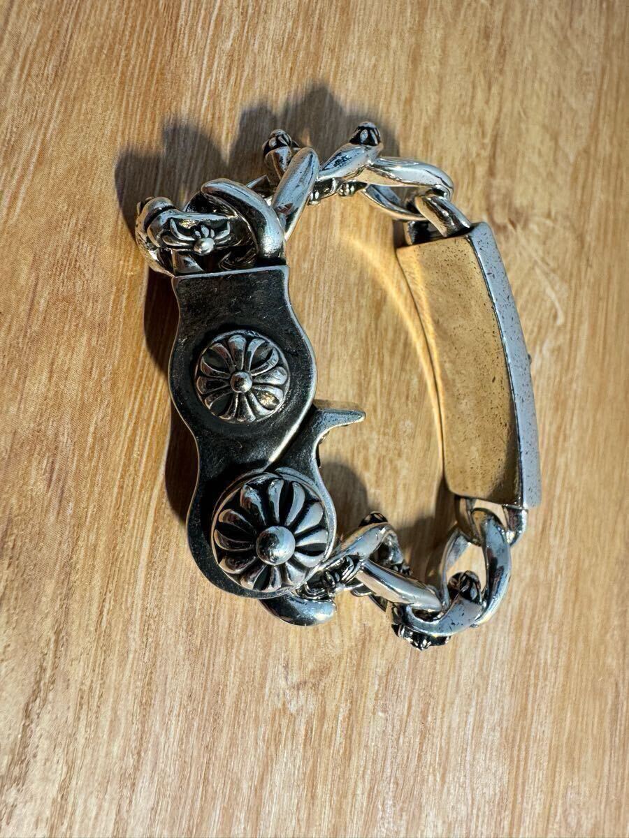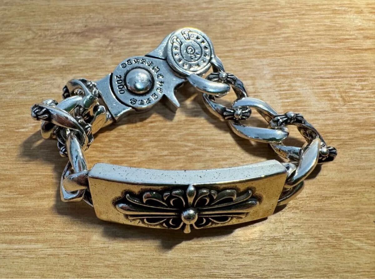 ブレスレット リストバンド シルバー チェーン 人気 フローラルクロス ビンテージシルバーコーティング シルバーブレスレット