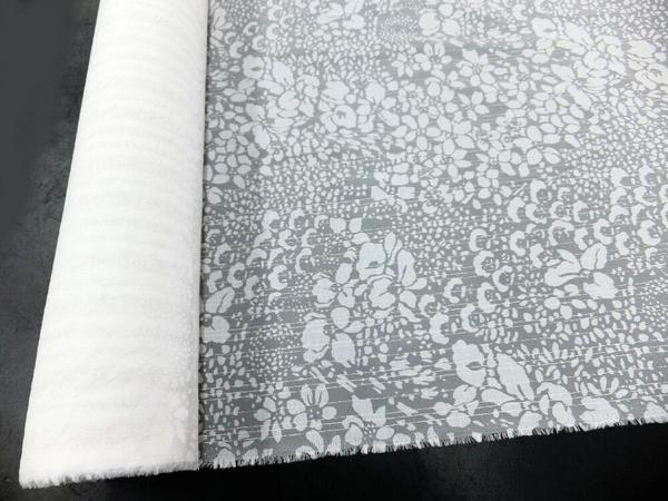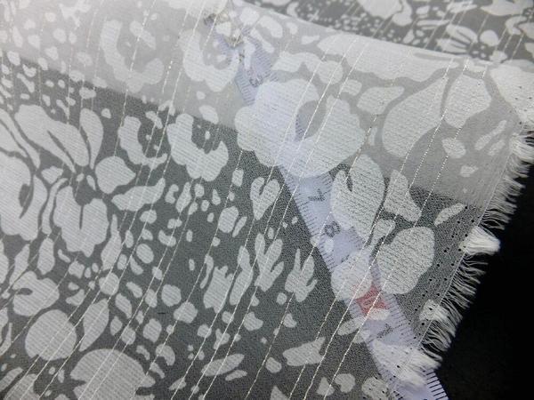 メタルストライプ入の花柄オパールジョーゼット生地(オフ白・10m)