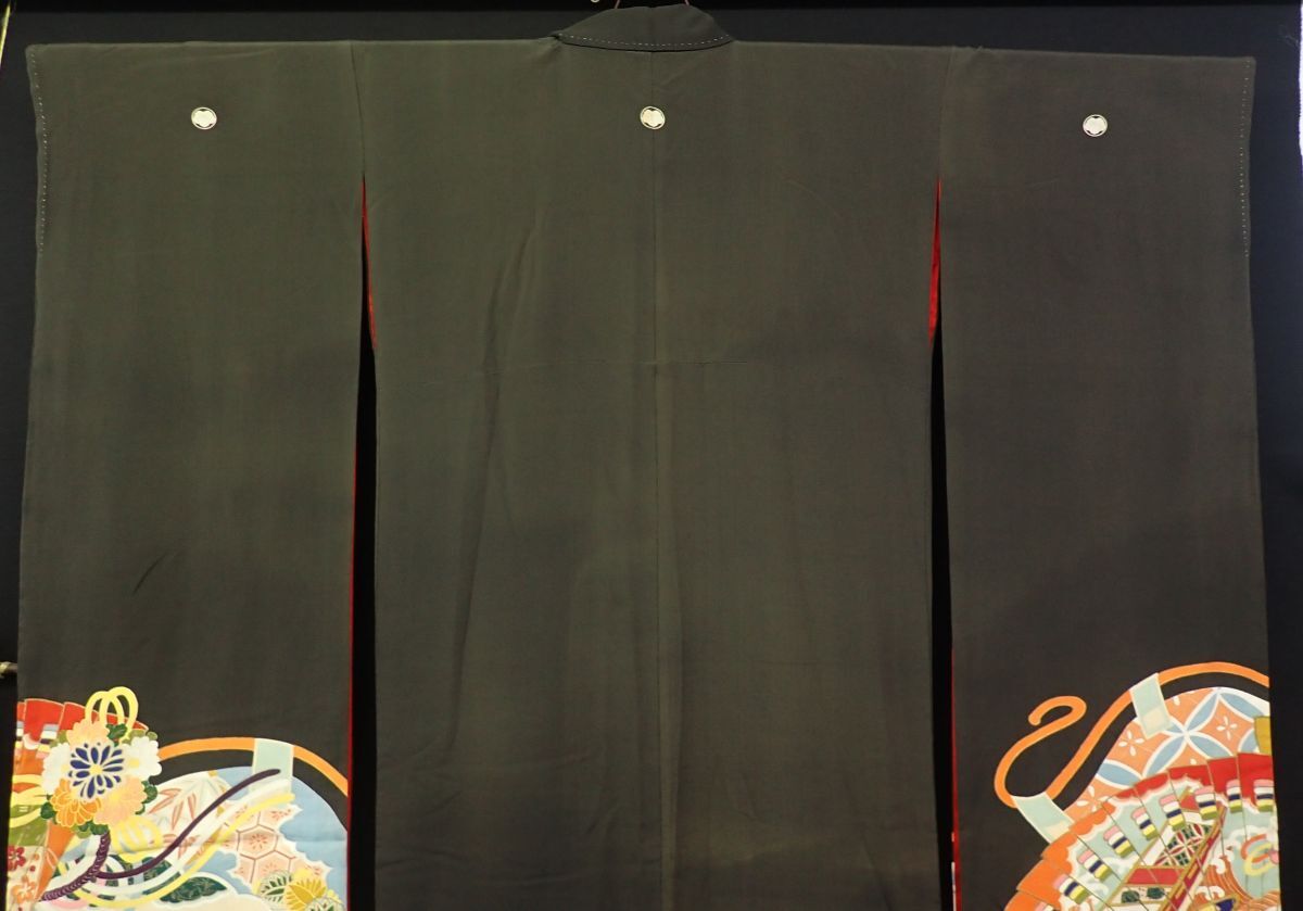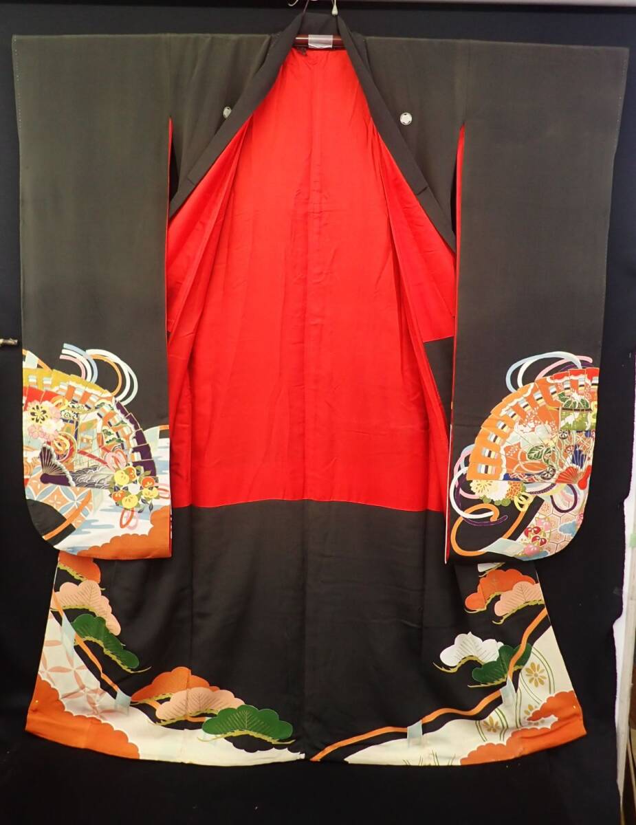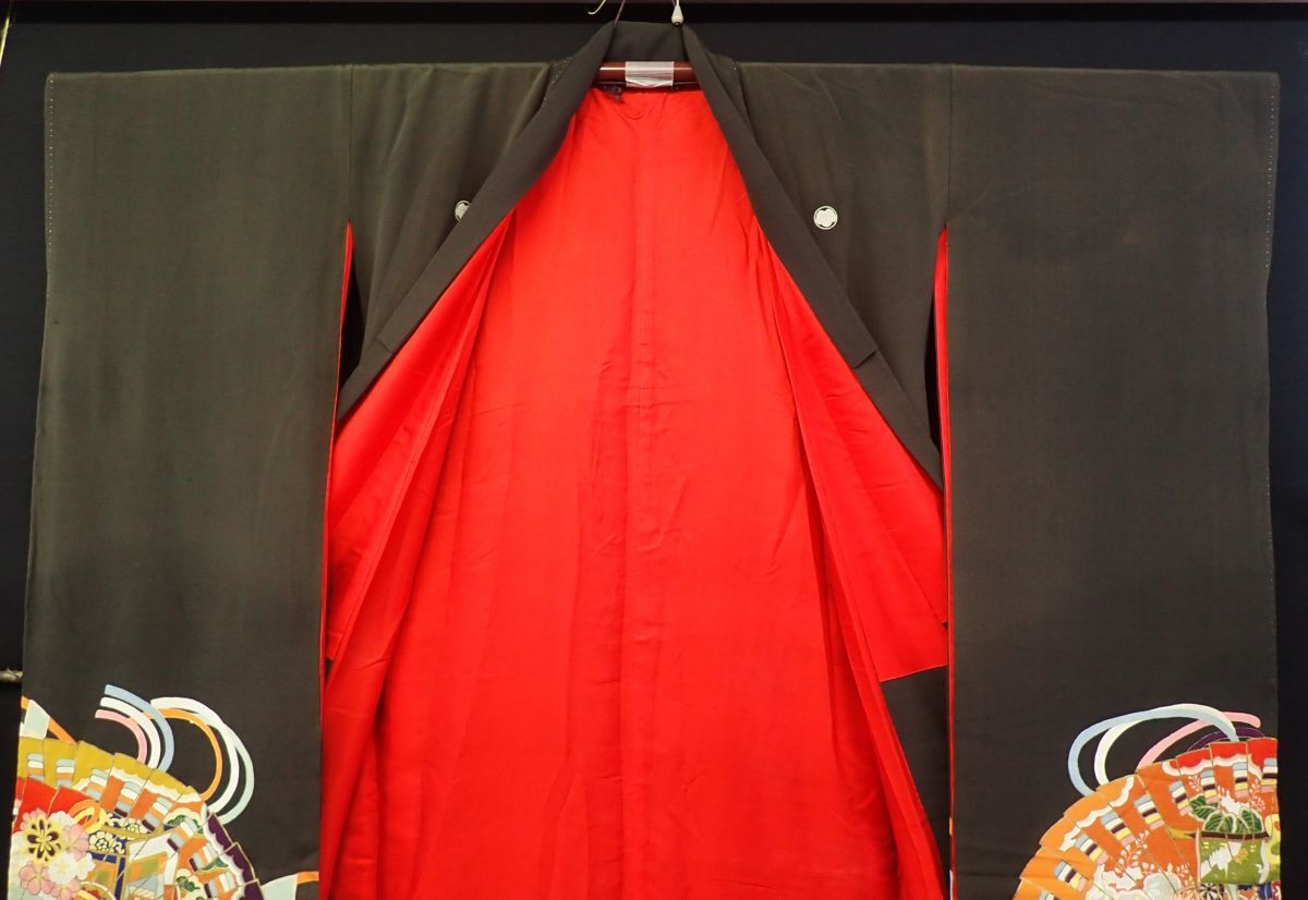 ■03 振袖 成人式 アンティーク 御所車 扇 正絹■和装品/和装小物/消費税0円