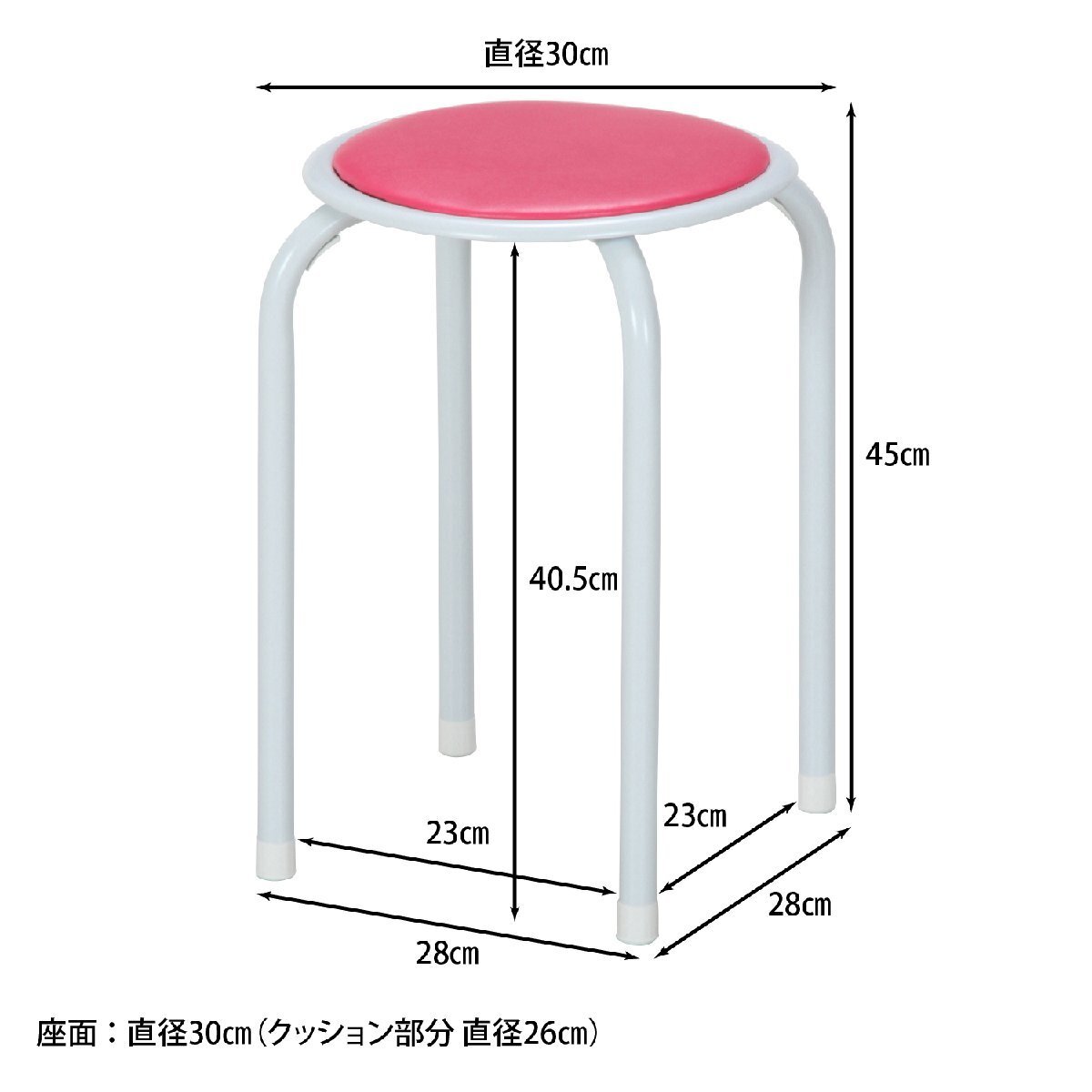 サイズ | 全体:幅300 × 奥行300 × 高さ450mm × 12脚 座面高:450mm 耐荷重(座面):80kg 座面直径:300mm 座面クッション直径:260mm 脚部鉄厚:1mm ※詳細はサイズ画像をご確認ください。 |