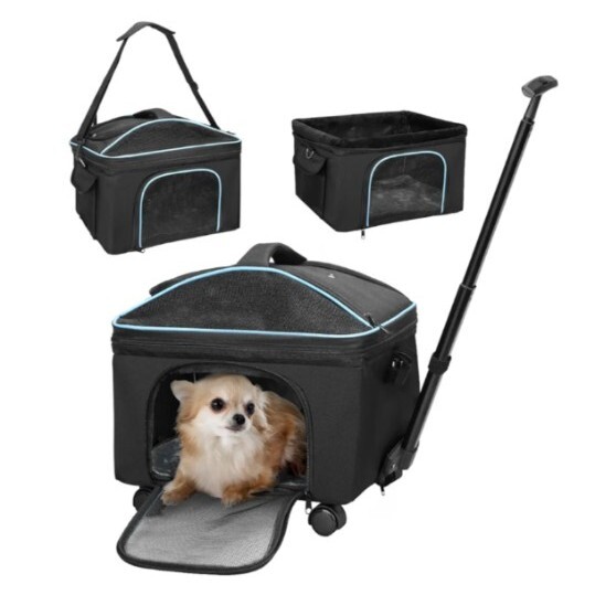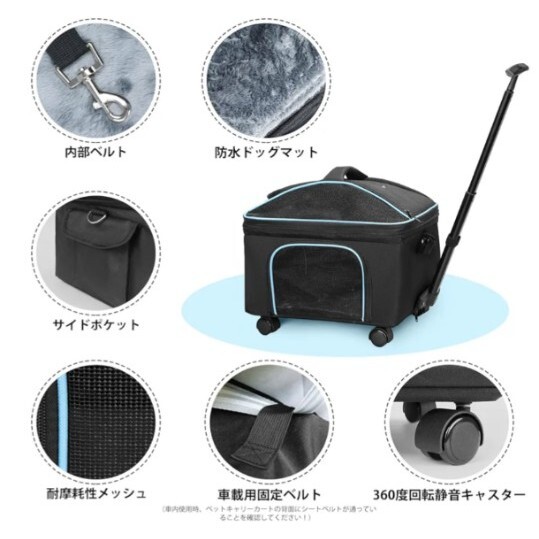 犬用 ペットキャリー キャリーバッグ 折りたたみ 通気 耐久性 リュック 軽量 車載用 持ち運び 旅行 通院 ペットキャリー キャスター付き ペット用品(ブラック)