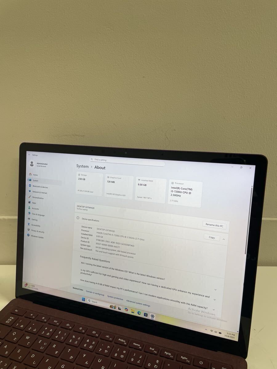 【バッテリー膨張】Microsoft Surface Laptop Intel Core i5-7200U @2.50GHz メモリ8GB/SSD256GB/13.5型 Win 11 Home ジャンク
