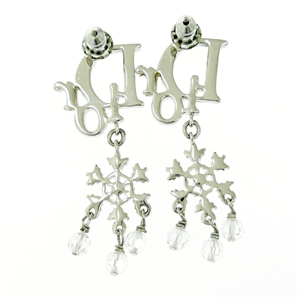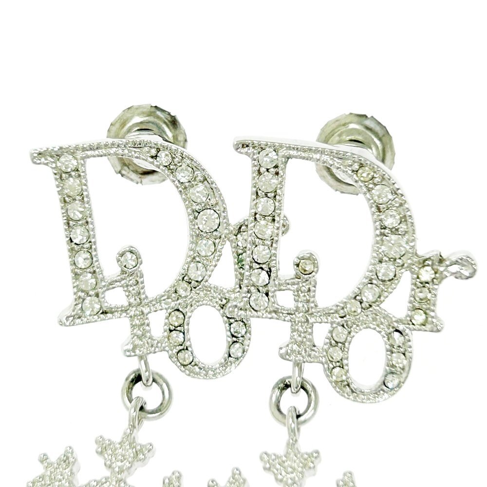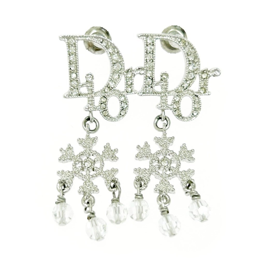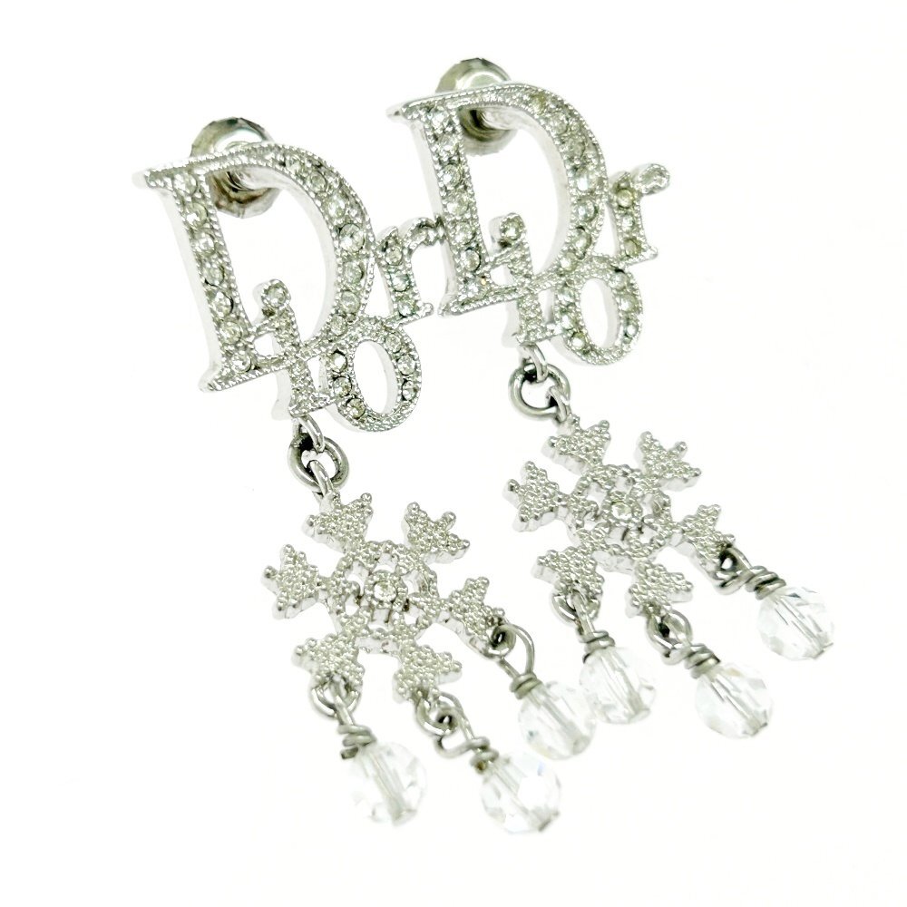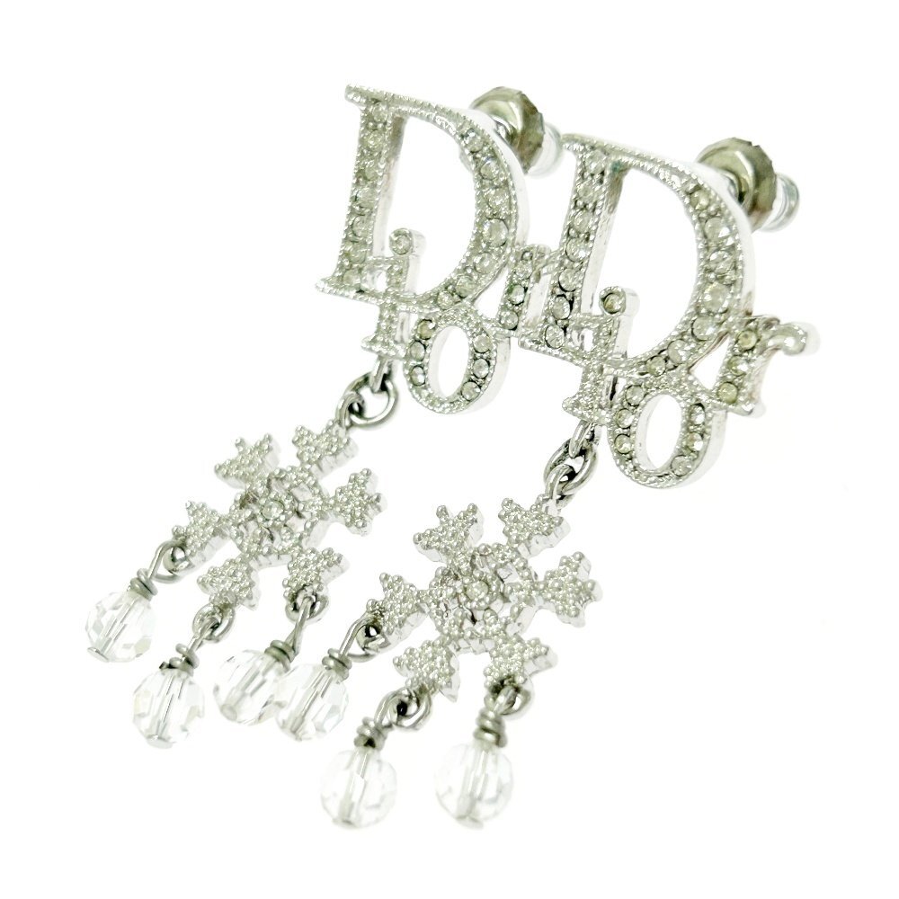 【1円スタート】Christian Dior クリスチャンディオール メタル ラインストーン ビーズ Diorロゴ シルバー ピアス 497322
