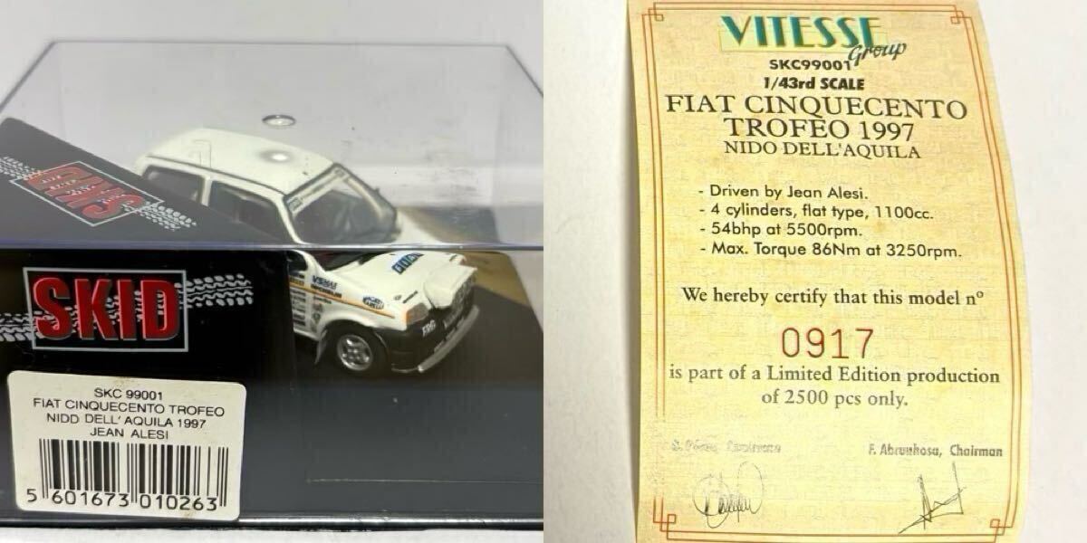VITESSE SKID 1/43 フィアット チンクエチェント トロフェオ No.105 J.アレジです。