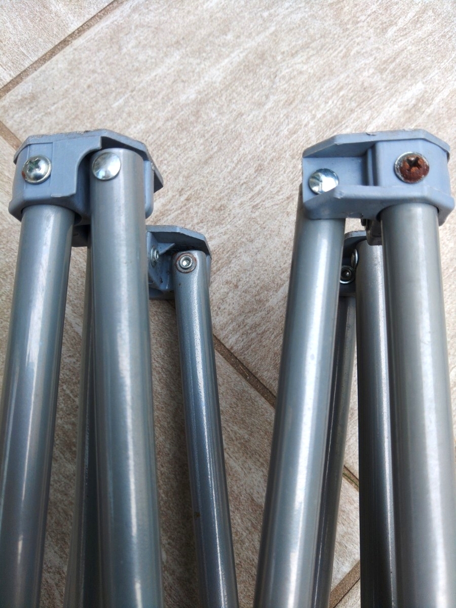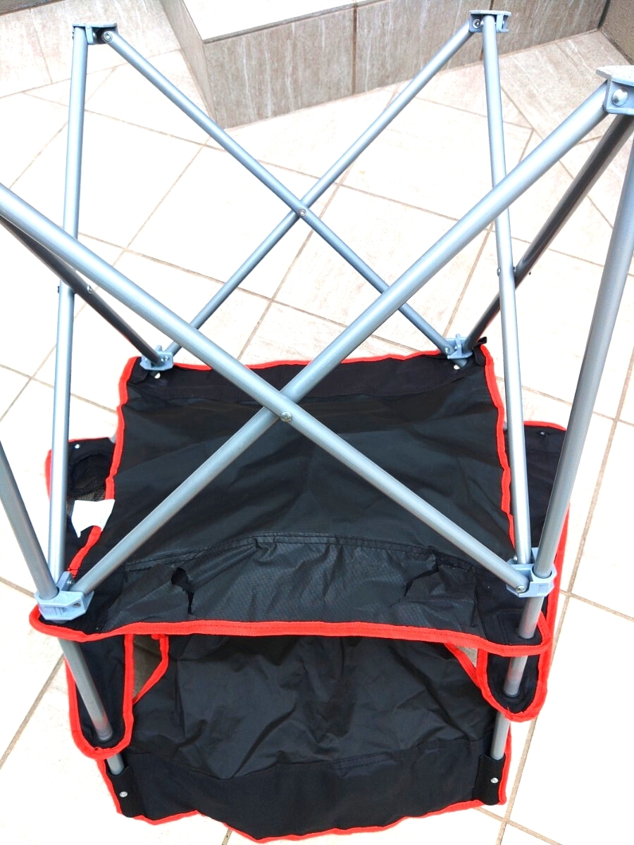 使用状況 :かなり前に購入し何回か使用しましたが、出番なくずっと物置に保管していました。一脚が座面中央に1~2㍉の穴(画像9)、座面生地の裏側後部に破れ(画像8)がありますが使用に支障はありません(実際に座る面の破れではありません)。もう一脚は比較的状態良好です。