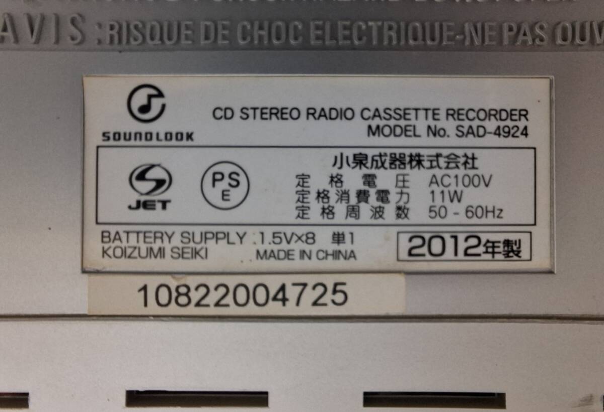 【貴重/通電OK】小泉成器 SOUNDLOOK SAD-4924 CDラジカセ 2012年製 マイク付き ジャンク