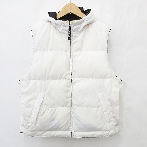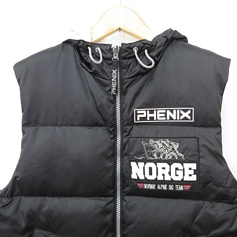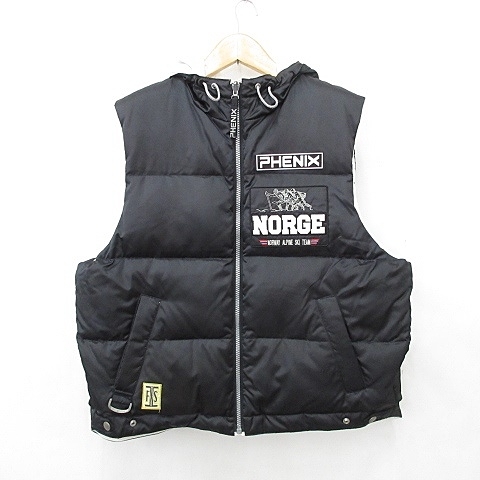 フェニックス PHENIX ベスト ダウンベスト リバーシブル 2WAY ジップアップ フード ワッペン プリント 黒 白 ブラック ホワイト 98-6
