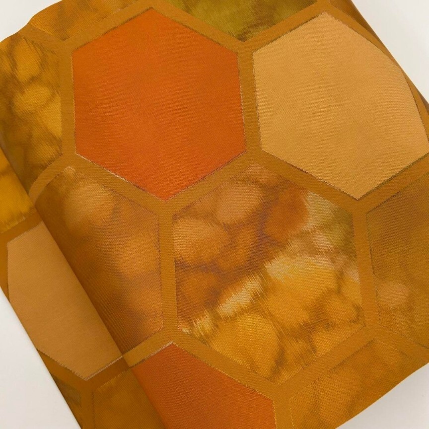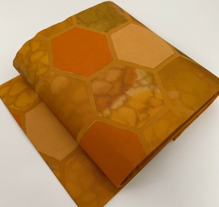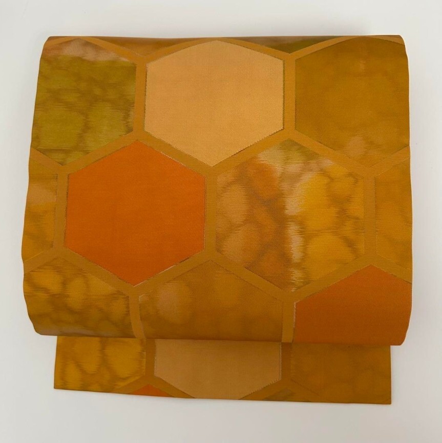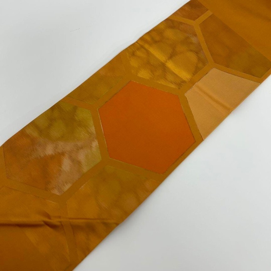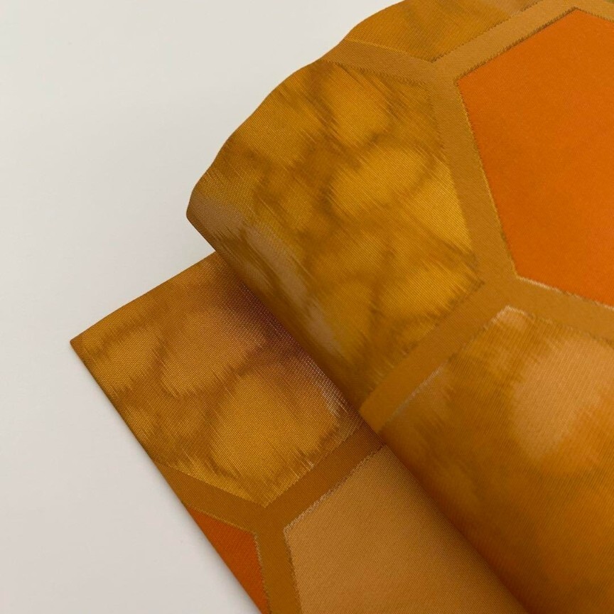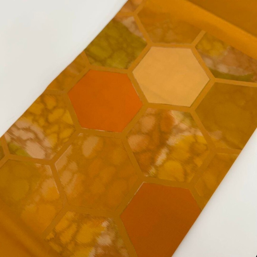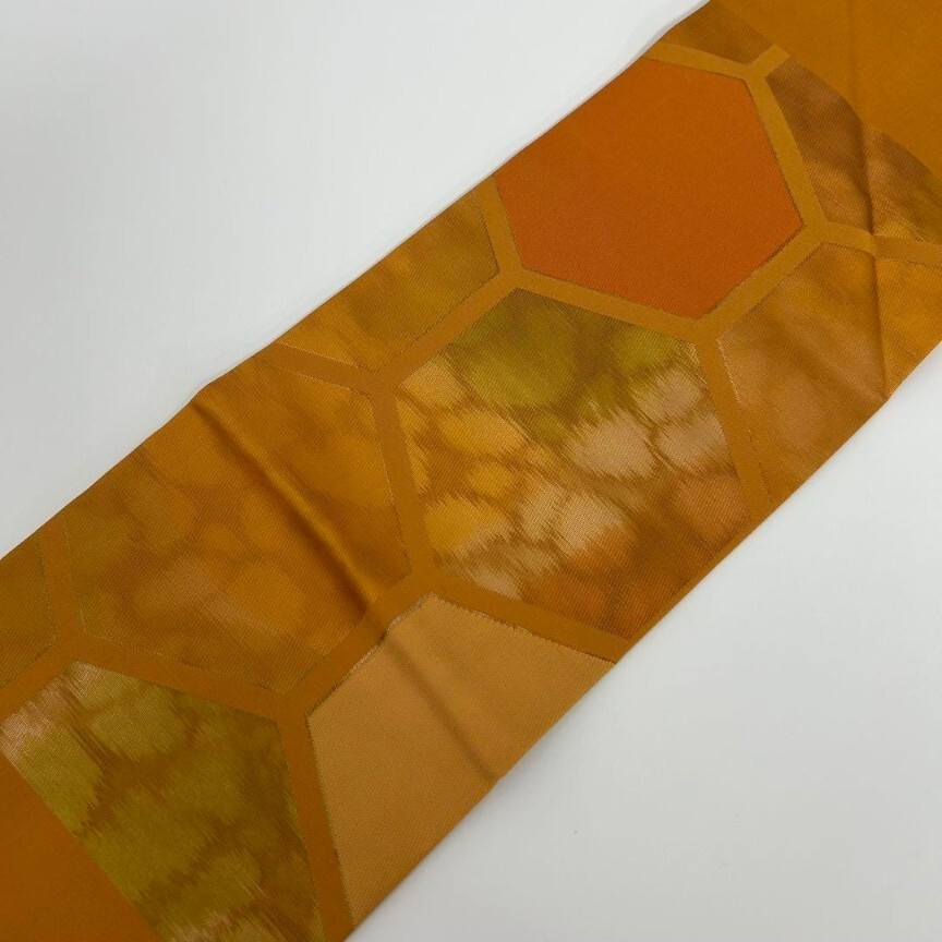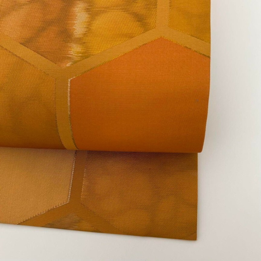 【楓】名古屋帯 正絹 引き箔 亀甲繋ぎ 九寸 KU-8482