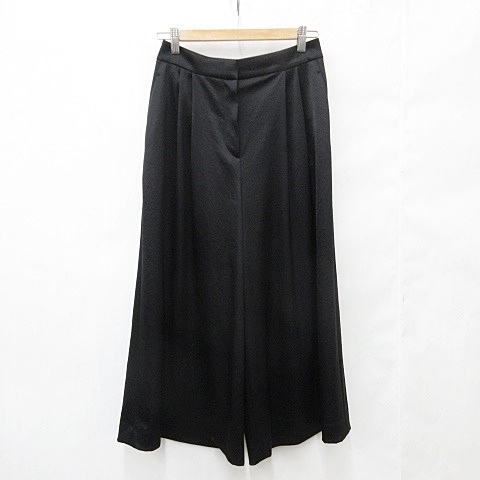 セオリーリュクス theory luxe パンツ ワイドパンツ ガウチョパンツ ロング タック 後ゴム サテン 黒 ブラック 38 レディース