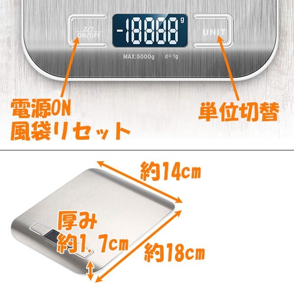 商品説明 | 1gから5kgまで計測可能なデジタル キッチンスケール オートパワーオフ 風袋引き機能付き クッキングはもちろんお菓子作りにも使える はかりです お洒落デザインの薄型計り 測り本体は保護フィルムで覆われた状態で届きます 別途 単4電池2本が必要です