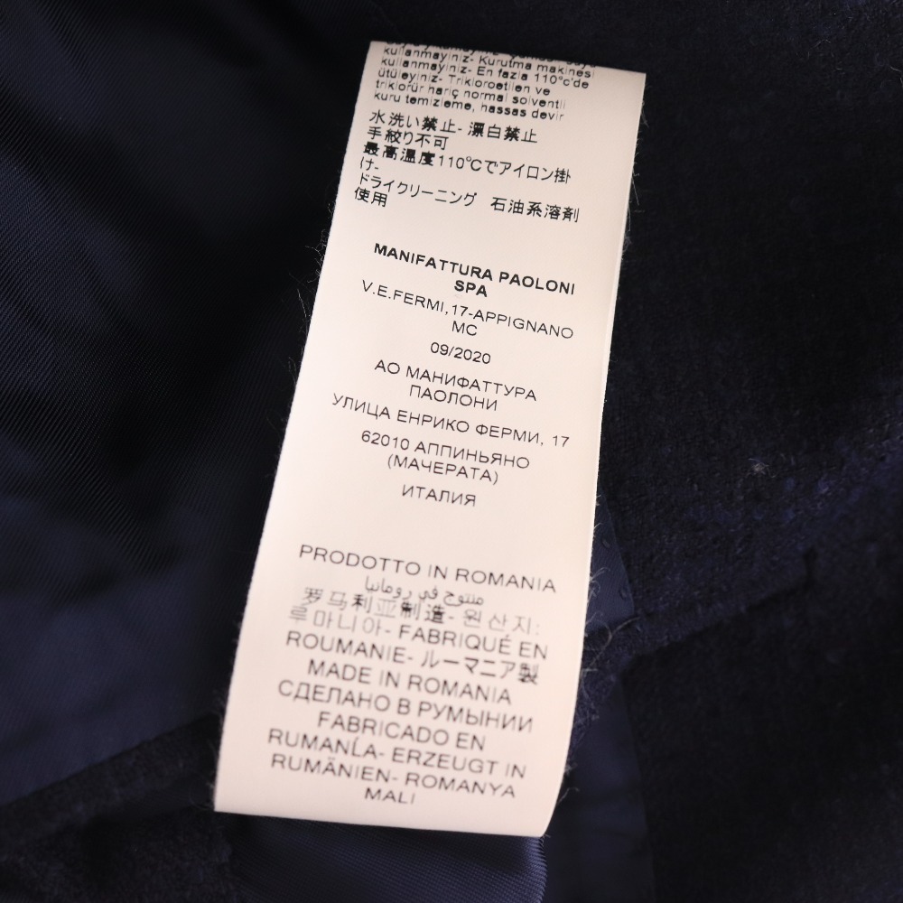 | パオローニ PAOLONI ジャケット ハサミモチーフピンバッジ メンズ 50 ネイビー クリーニング済みとお伺いしております。 付属品:写真のものが全てです ●表記サイズ:50 ○実寸 着丈:71cm 肩幅:47cm 身幅:54cm 袖丈:64.5cm 裄丈:88.5cm ⇒ アパレル商品のカラー基準・採寸方法・海外サイズ換算表 (参考)トルソー(マネキン)は男女ともMサイズです。 素材:羊毛72% アクリル15% ポリエステル9% ポリアミド4% | ||||||||||||||||