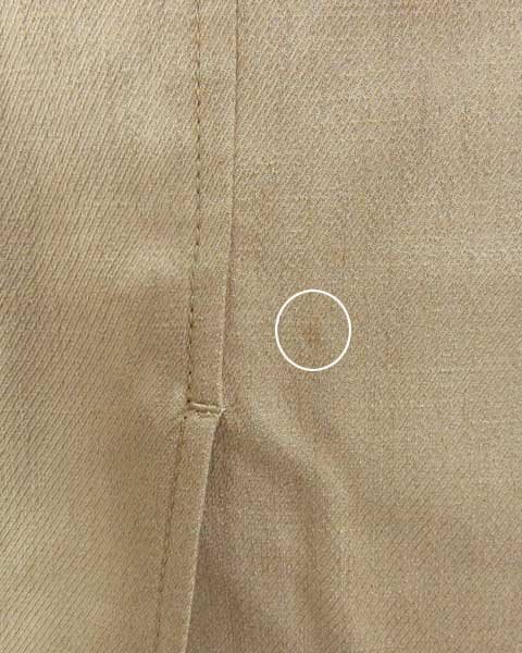 コンディション | スカートフロントスリット上に薄茶汚れ スカートの裏地の縫い目にひっぱりあり |