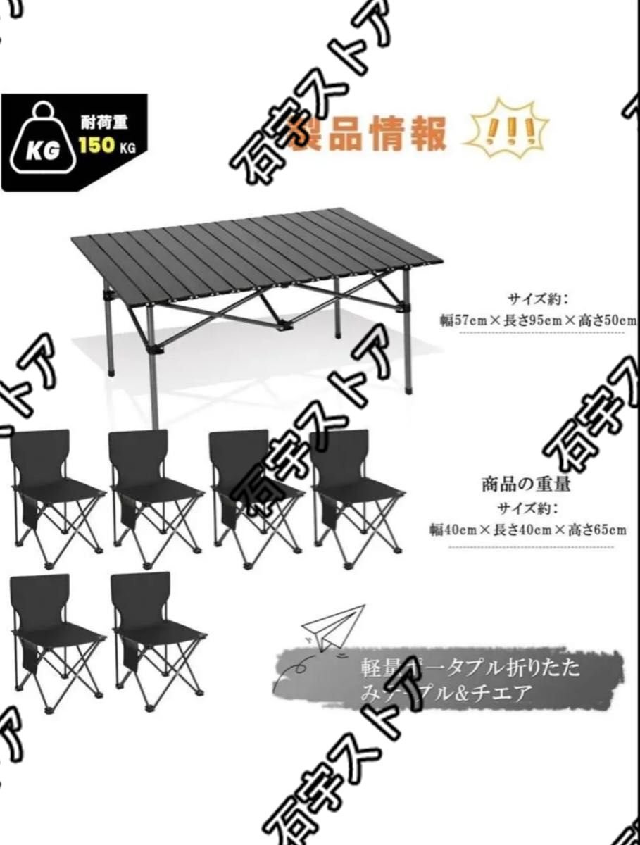 アウトドア テーブル チェア セット ピクニックテーブル 超軽量 折り畳み 組立簡単 収納バッグ付き (ブラック, 7点セット)shw0041