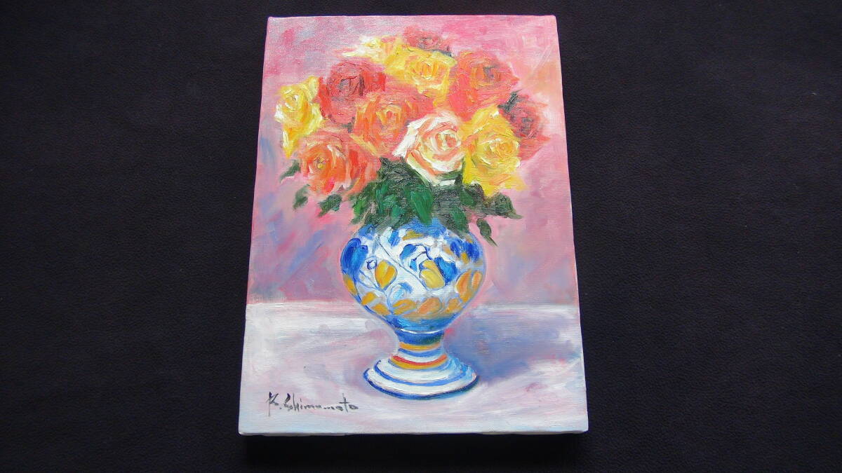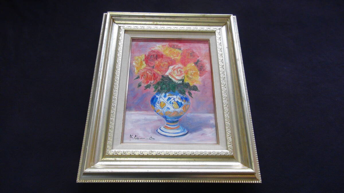 真作保証 油彩画 F4号 島本良平 「薔薇」 額付 サイン裏書あり 應美会