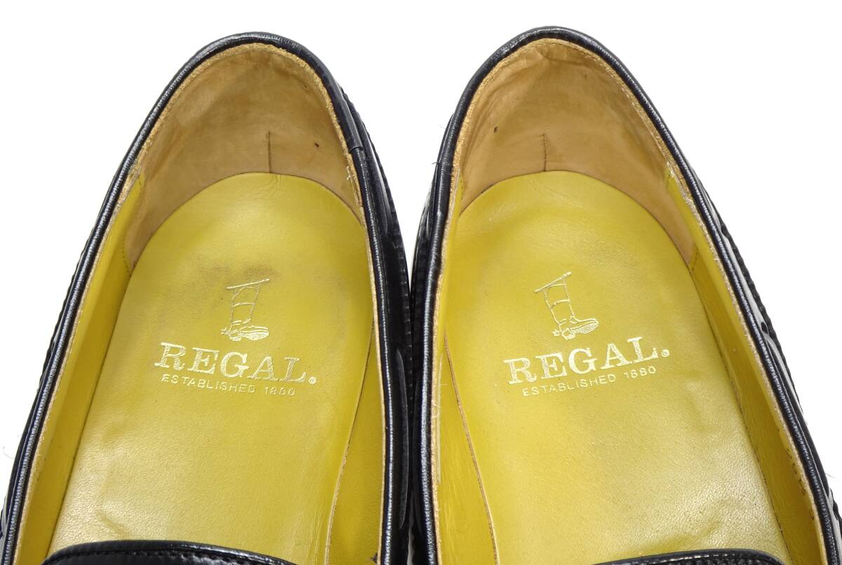 即決 REGAL 25.5cm タッセルローファー リーガル メンズ 黒 ブラック BLK 本革 ウイングチップ 本皮 ビジネス ドレス 革靴 紳士靴 モカシン