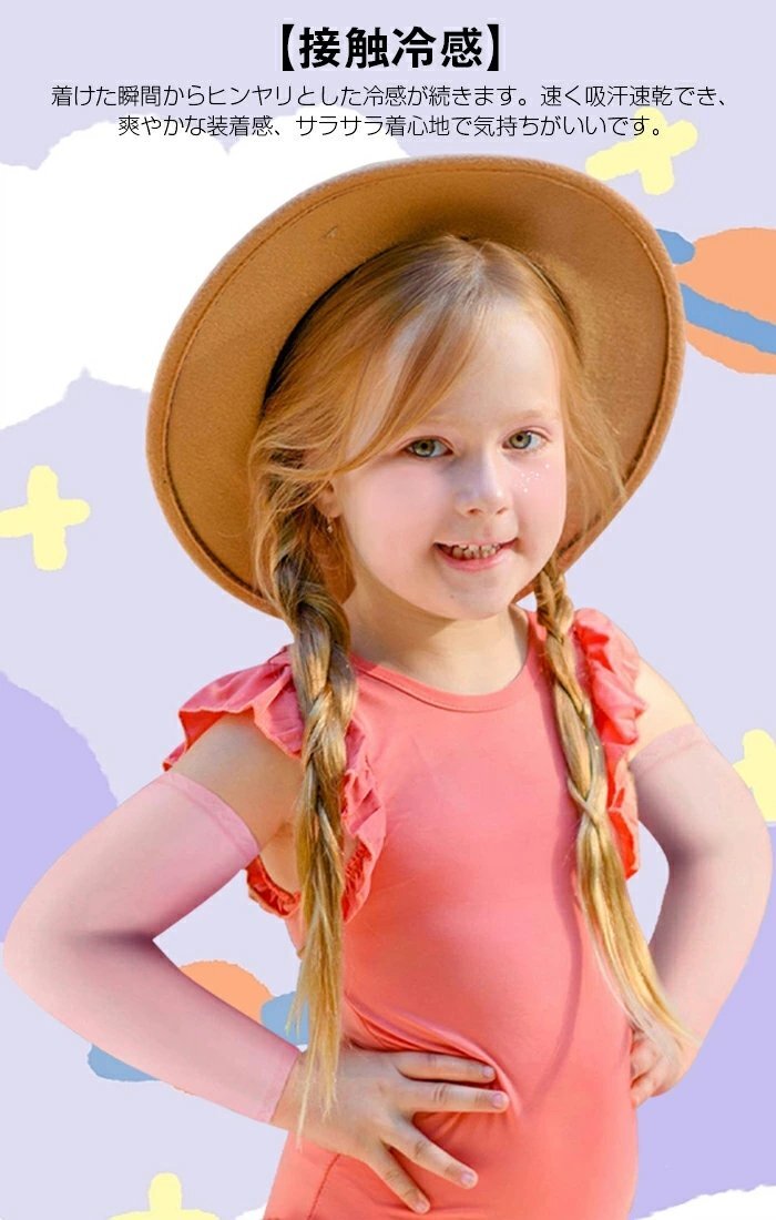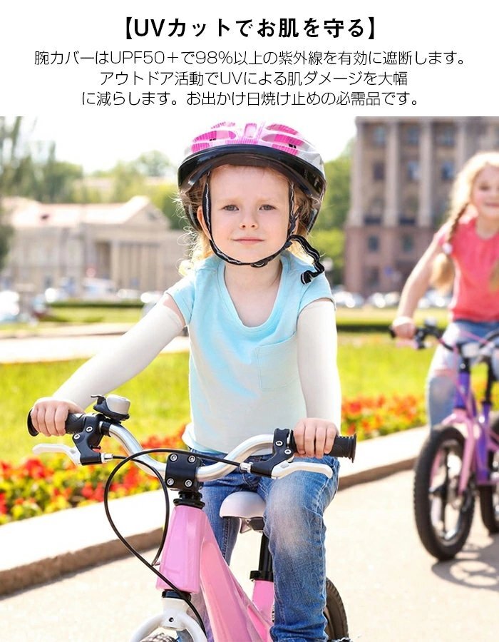 子供用 アームカバー キッズ 腕カバー 日焼け止め アームスリーブ 無地 男の子 女の子 UVカット UPF50+ ☆ 2個セット☆14色選択/1点