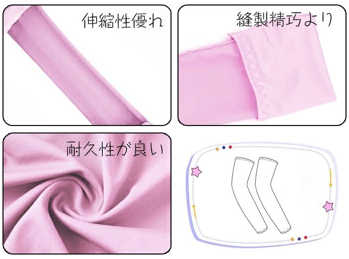 れるアームカバーので、夏の時に最適だ。 【伸縮性抜群】高伸縮性布地を採用して、アームにぴったり合うので、楽に肘関節の曲げ伸ばせて、肌触りが良い!袖口の両端がわざと滑り止め加工を施して、滑り止め機能をもつ。