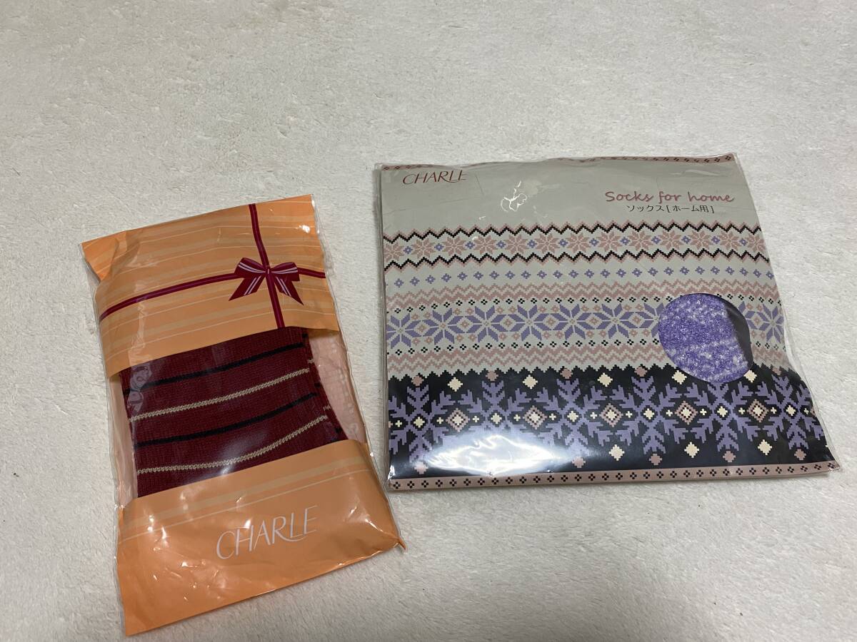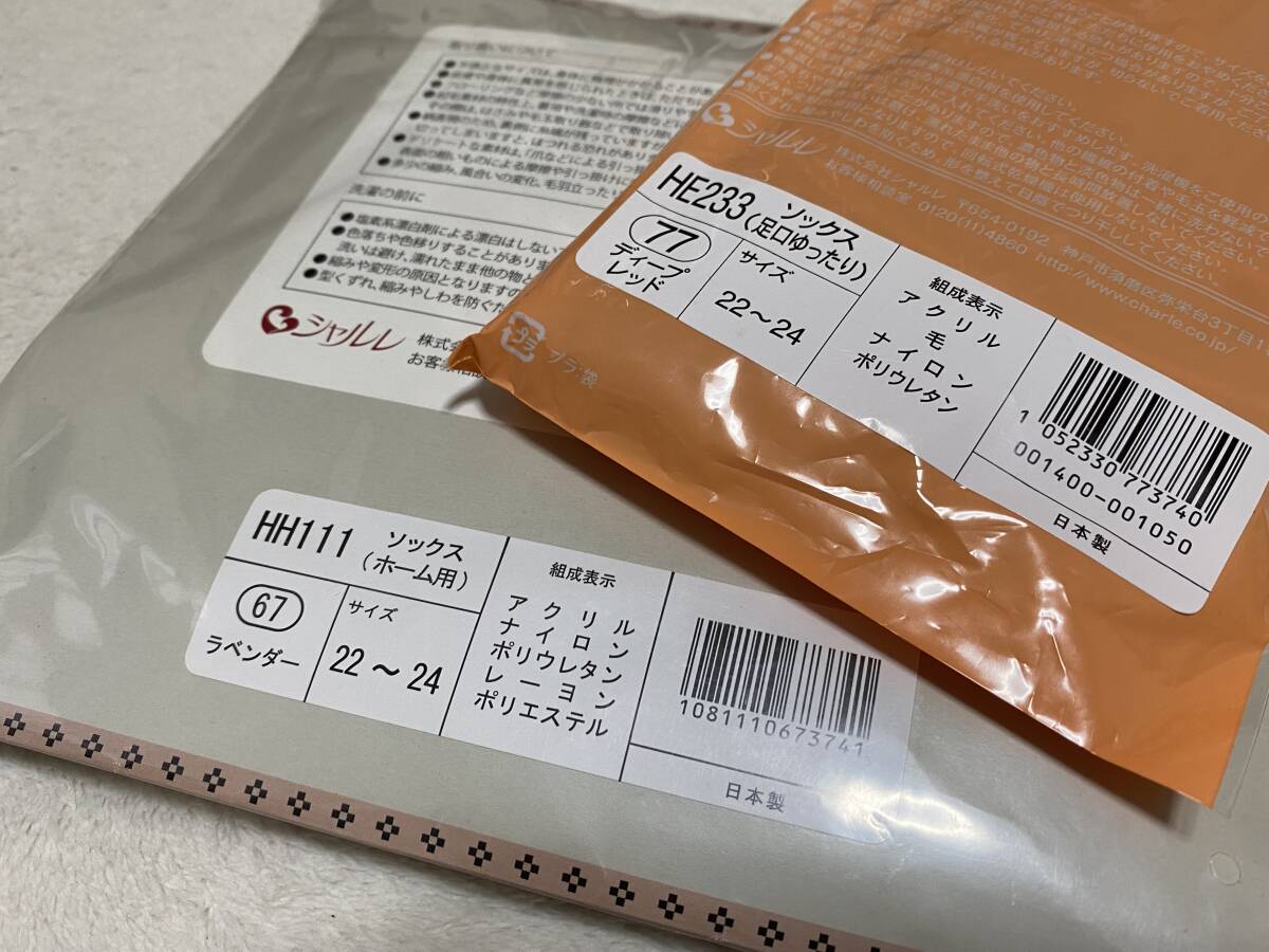 新品【シャルレ】日本製 婦人ソックス2足 ★ホーム用ソックス(1足) 22〜24cm アクリル・ナイロン・ポリウレタン レーヨン・ポリエステル 定価1,980円 ・お色はラベンダー ・足口やレッグ部分は締め付けを感じにくい ふんわり設計 ・温かみのある雰囲気が嬉しい ノルディック柄 ・マシュマロタッチの糸を使用し ふんわり・あったか ・アルガンオイル配合の加工&保湿成分 ★足口ゆったりソックス(1足) 22〜24cm アクリル・毛・ナイロン・ポリウレタン ・お色はディープレッド ・ゆったりした2重のリブ編みで ふんわり、優しくフィット 締め付け感が少なく快適 ・ボディー部分は優しく伸びて締め付けにくい ・フラット仕様の足先で快適 |