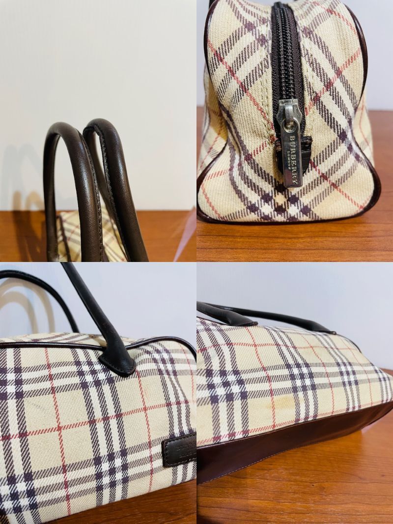 ブランド名:BURBERRY BLUE LABEL サイズ:縦約:15cm 横約:27cm マチ約:10cm 色:ベージュ系 ブラウン系 状態:10段階中6程度 素材:レザー 綿 バーバリーブルーレーベルのコットン、レザーノヴァチェックミニボストンバッグになります! 日本製です! 表面に汚れが所々あります。 擦れやキズ等が角やストラップ等少しあります。 裏地にアタリなどがあります。 内タグの表面が劣化しておりポロポロと表面が剥がれてきております。 状態は当方の感覚になりますので神経質な方はご遠慮ください。 | |||