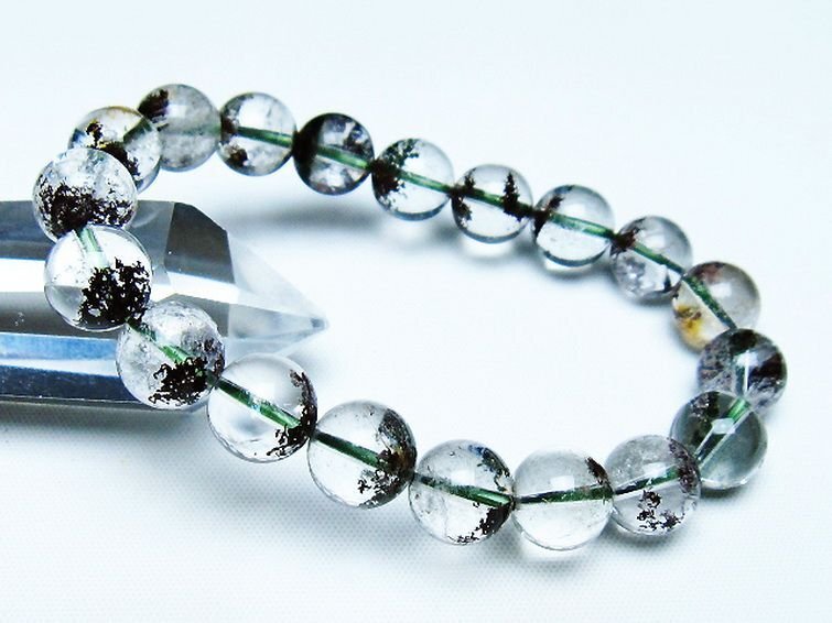■商品名: グリーンファントムブレスレット ■商品ID: T13-10452 ■商品重量:約 27g ■商品サイズ:内周約:157mm(±5mm)粒直径約:10mm(±0.5mm) ●ファントムとは、「影」「幽霊」という意味。 水晶の結晶が生成していく過程でいったん成長が止まり、その後再び成長を開始すると、その境目に気泡や他の物質が取り込まれ、まるで山の影を思わせる模様ができます。時にはそうした山の影が幾層にも連なっる場合があります。こうしてできた石を、ファントム水晶と呼びます。和名では、「幻影水晶」「幽霊水晶」と称される場合もあります。 ファントム水晶は、山や谷といった困難にめげずに進む「克服」の暗示や、物事を隆起させる暗示を放つとされます。そのため、商売や事業運を興隆させたい人に非常に人気があり、また成長期の子供にお守りとして持たせたりする場合もあります。 また、新陳代謝を促進して細胞の再生を促したり、電磁波を消散させるチカラ、霊能力やサイキックなパワーについても語られています。 ファントムの色は、白、緑、オレンジ、茶色とさまざまで、特に白や緑はヒーリング力が強いとされます。 また山の姿も、見事なピラミッド型から渦を巻いているような形、雪山、嵐、流星群をを連想させるものまでさまざまで、人のイマジネーションを強く刺激します。 パワーストーンを知れば知るほど、こうした石の魅力にとりつかれる方が多いようで、ガーデン水晶やファントム水晶にひかれるようになったら、もう立派なパワーストーン通と自称できるでしょう。 ●品質:困難の克服、物事の興隆と再生、着実な進歩、成長.育成、ヒーリング、新陳代謝の活発化、肌の再生、霊視力【水晶(石英、クリスタルクォーツ)】 |