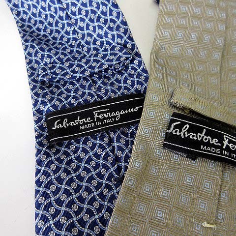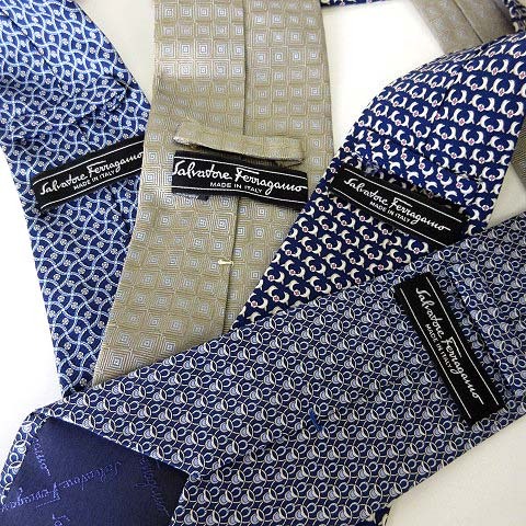サルヴァトーレフェラガモ Salvatore Ferragamo ネクタイ 4本 セット シルク 総柄 紺 ネイビー ベージュ 紳士 ビジネス メンズ