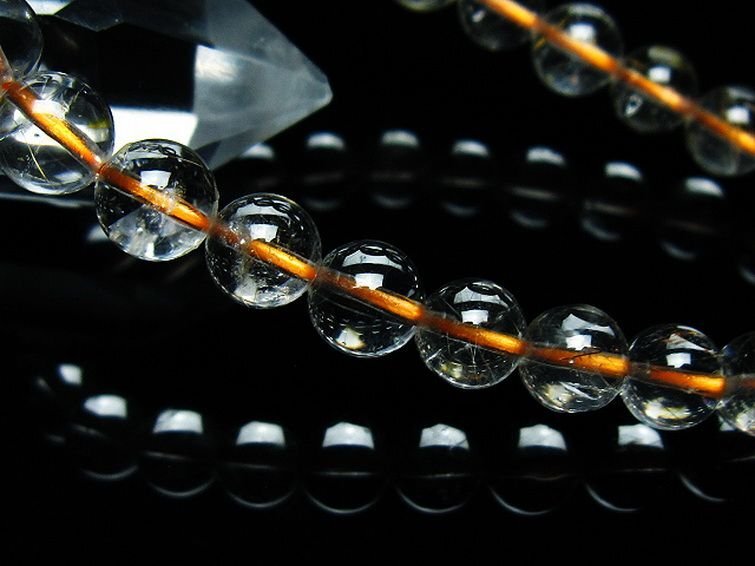 ■商品名: 金針ルチル水晶ブレスレット ■商品ID: T50-9454 ■商品重量:約 15g ■商品サイズ:内周約:154mm(±5mm)粒直径約:8mm(±0.5mm) 【ルチルクォーツ(針入水晶)】 ルチルクォーツは近年大人気の針状物質が入った水晶です。繊細な針が水晶の中でひしめきあい、きらきらと輝く様はまさに自然の芸術品。 様々な色のタイプがありますが、共通する効果としては財運や金運を強力に集め、事業運、商売運、目標達成、直観力をもパワーアップさせると言います。また邪気を払ってくれるとされています。 財に関わる直観力が冴えるとされますので、投資やギャンブル運アップも期待できます。 ■ワンポイント情報 一般にクリアでかつ金針が密集しているもの程価値があるとされていますが、内包物を含む水晶は濁ったように結晶しやすく、ルチルクォーツは針が多くなるとどうしても透明感は下がってきます。しかしながら天然石は世界に一つしかありません。いろいろ状態のルチルがありますので直感で閃いたものが、世界で一人の自分のための水晶といえるでしょう。 気の遠くなるような年月をかけ育つ水晶の中に、偶然に針状物質が入り込む。この奇跡のような自然の神秘に是非触れてみて下さい。体の底からパワーが湧き出してくるはずです。 【水晶(石英、クリスタルクォーツ)】 水晶とは石英を指しますが、一般的に無色透明のものをクリアクォーツやロッククリスタルと呼んでいます。 水のように美しく透き通ったものが良いと思われがちですが、内部にヒビや他の鉱物などのインクルージョン(内包物)が入っているものがあり、それが天然物の証。また、インクルージョンによって様々な種類に分類され、それぞれ違った印象を与えてくれます。 古くから呪い事に使われてきた水晶に秘められたパワーはとても万能で、あらゆる場面に対応するといわれています。特に邪気を祓う力が強いため、人間関係を円滑にしたり、心身をクリアな状態にしたい場合に最適です。また空間を浄化する作用もあるとされ、インテリアとしても高い人気を誇っています。 石自体に強い自浄作用があり、他のパワーストーンが吸収した負のエネルギーを浄化するといわれています。更にアクセサリーとして他の石と組み合わせる場合、それぞれの石の個性を引き出しバランスを取ってくれる効果があるそうなので、ぜひとも組み込んでおきたいですね。 パワーストーン入門に最適な水晶ですが、愛好家にとってはかなり奥が深く最後に行き着くのもこの石なんだそうです。何もかもを見透かすような透明な水晶には、本当に神秘的なパワーが宿っているのかもしれません。 |