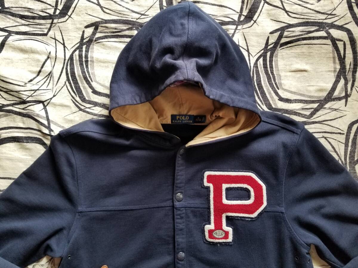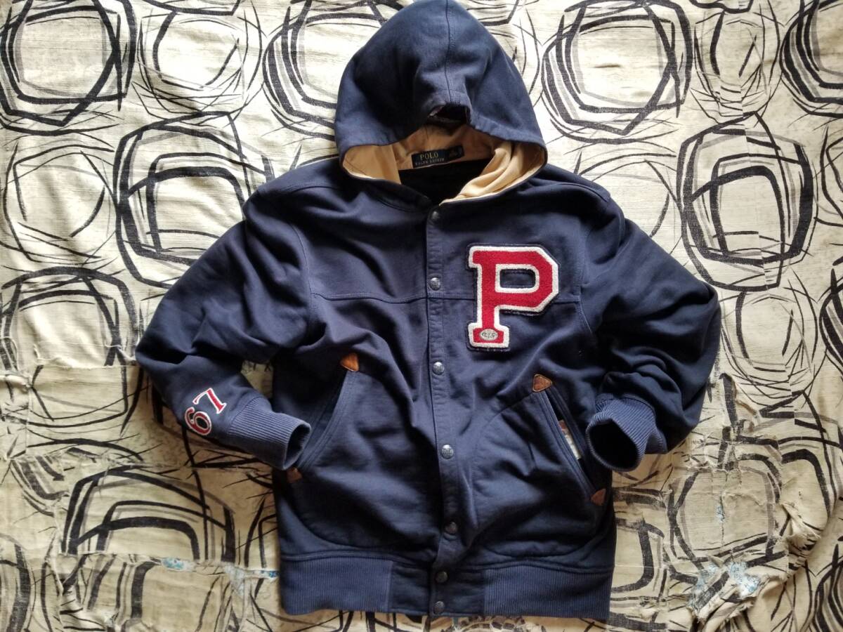 Polo Ralph Lauren ポロ ラルフローレン オリジナル 濃紺 ネイビー ビンテージ ワッペン スナップボタン パーカー スウェット スタジャン M