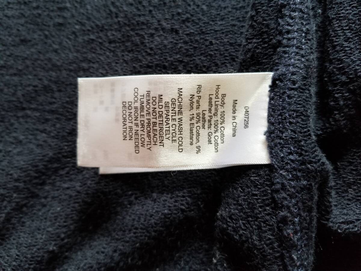 品質表示; 本体: 綿100% フード裏: 綿100% 皮革部分: やぎ革