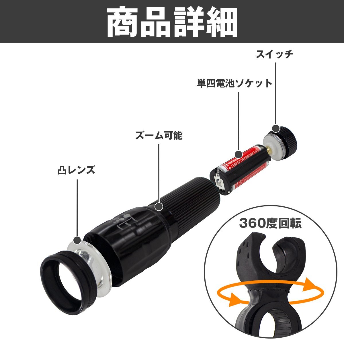 ストラップ付 LED ハンディライト 電池式 CREE ズーム機能 自転車ホルダー付き 防水 懐中電灯