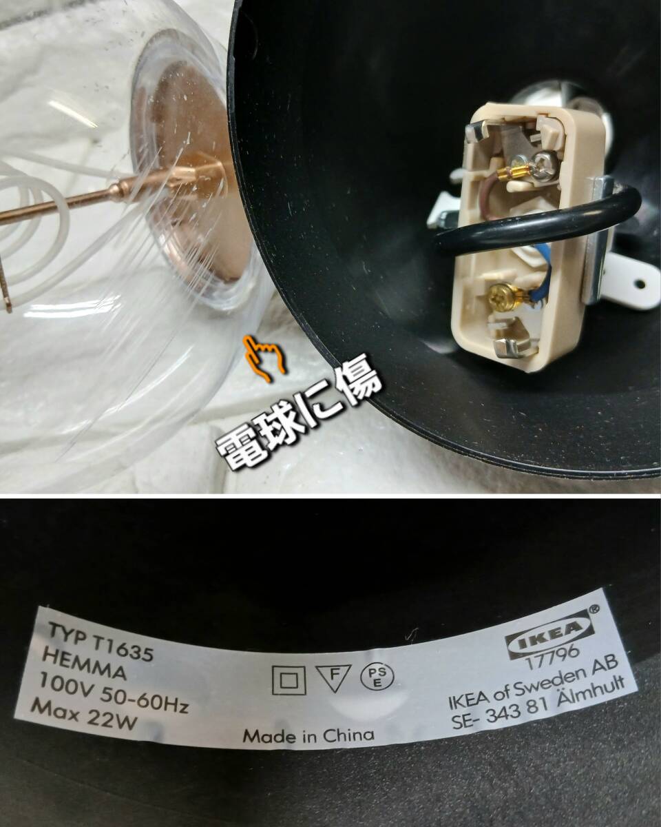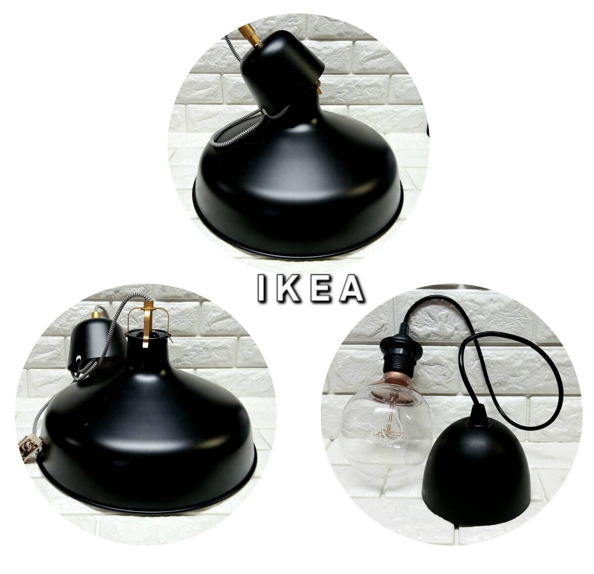 n225【照明3点セット】IKEA/イケア ペンダントライト 照明器具 (T1635) RANARP ラーナルプ 38cm (T1641)×2 省エネLEDランプ