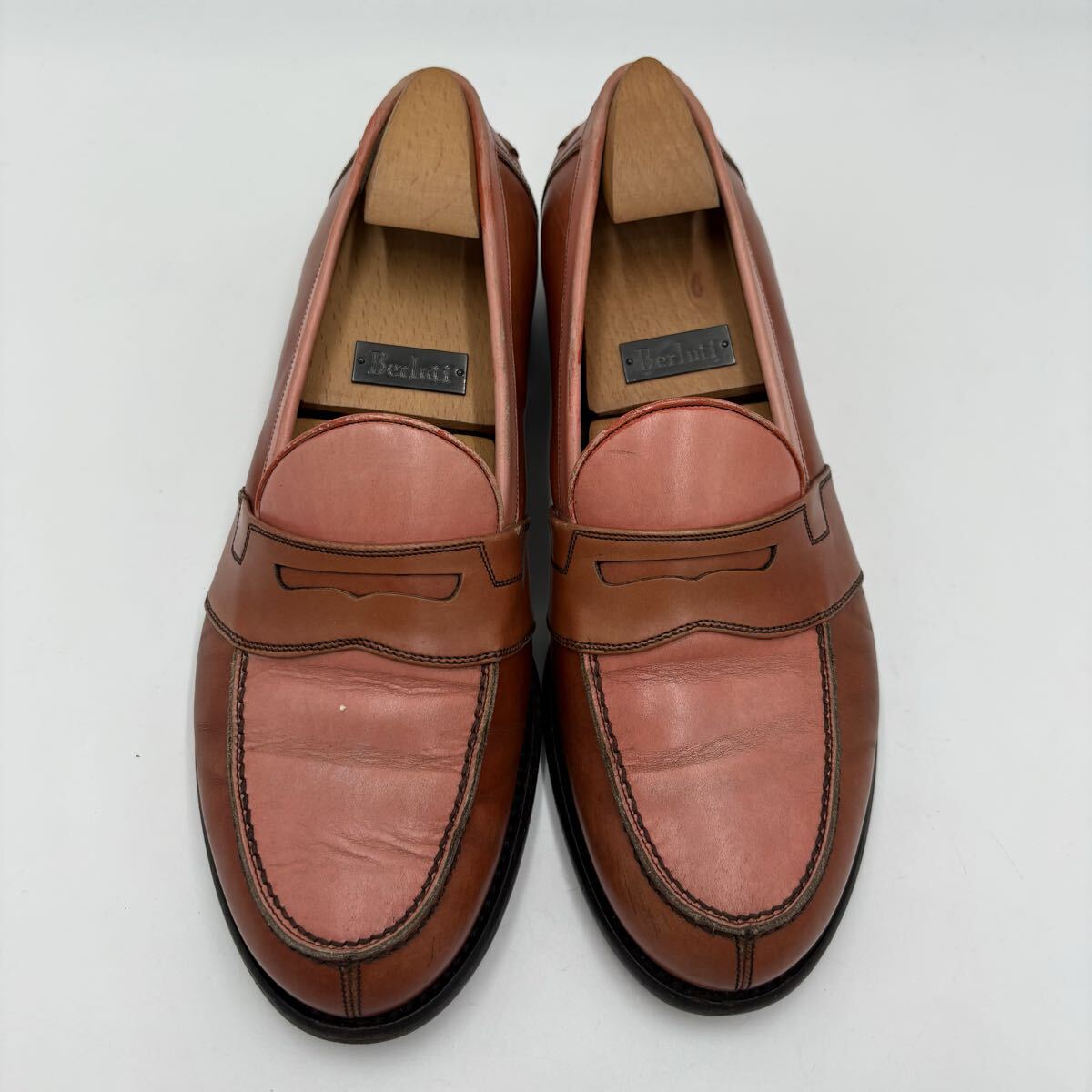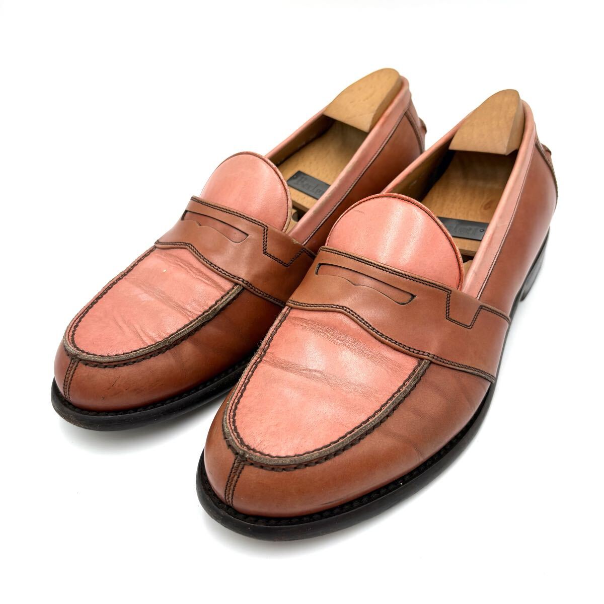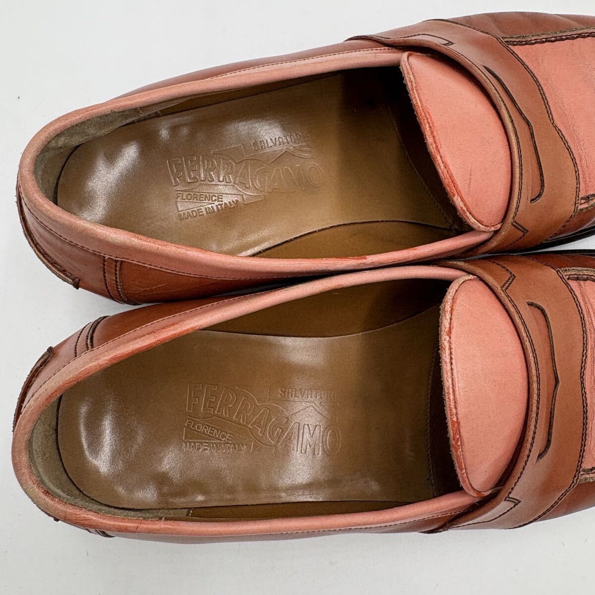 L ■ イタリア製 '高級紳士靴' Salvatore Ferragamo サルヴァトーレフェラガモ 本革 コインローファー 革靴 7.5 3E 25.5cm バイカラー
