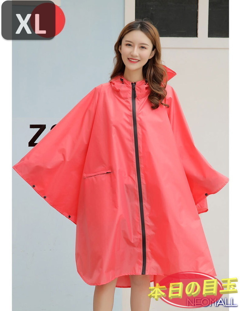 1スタ ☆ メンズ レディーズ レインポンチョ 【537】 ピンク XLサイズ レインウェア 通勤 通学 レジャー 自転車 カッパ 合羽 雨具