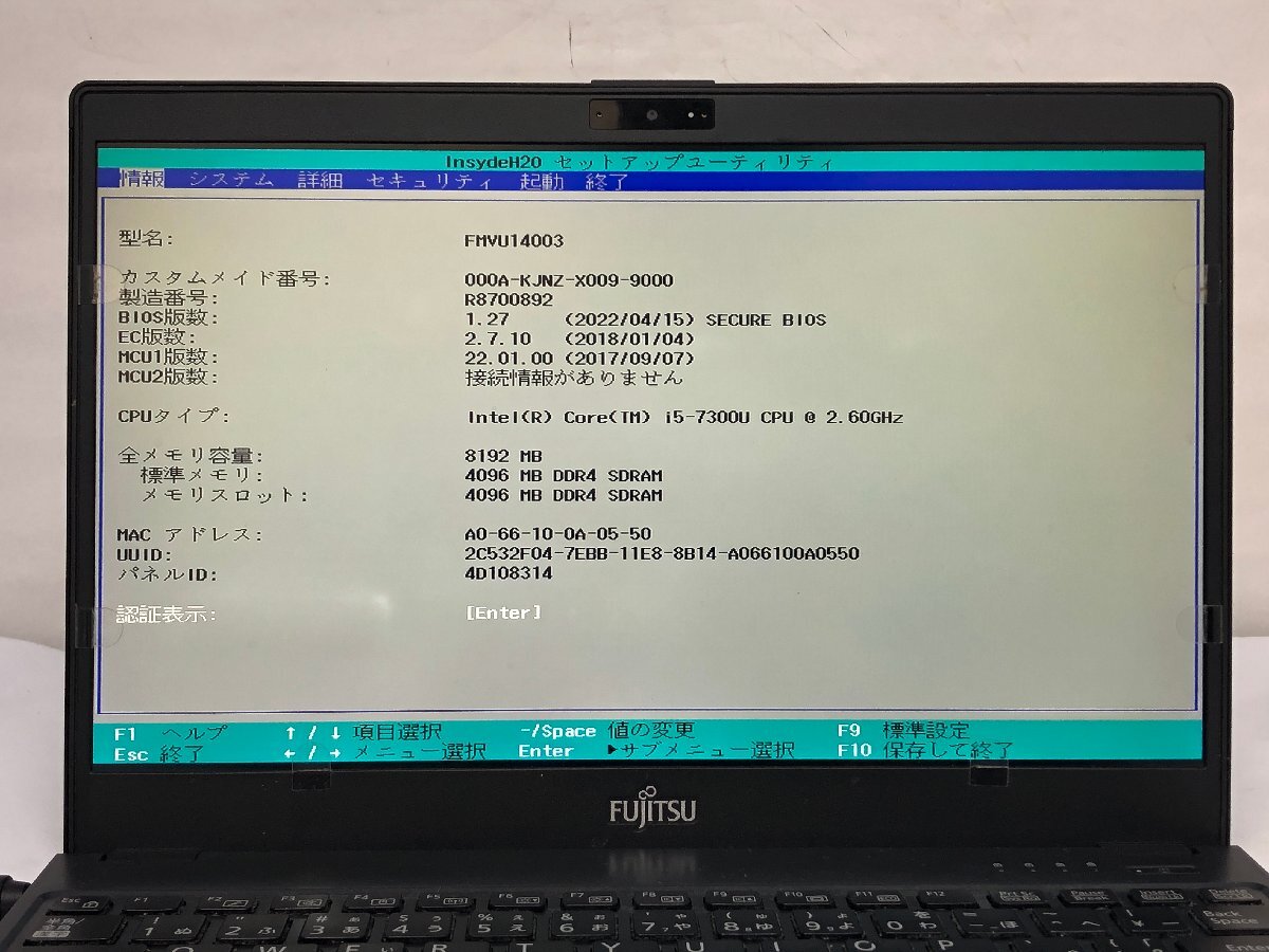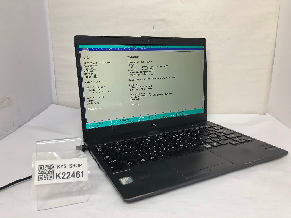ジャンク/ FUJITSU FMVU14003 LIFEBOOK U938/S Intel Core i5-7300U メモリ8.19GB ストレージ無し 【K22461】