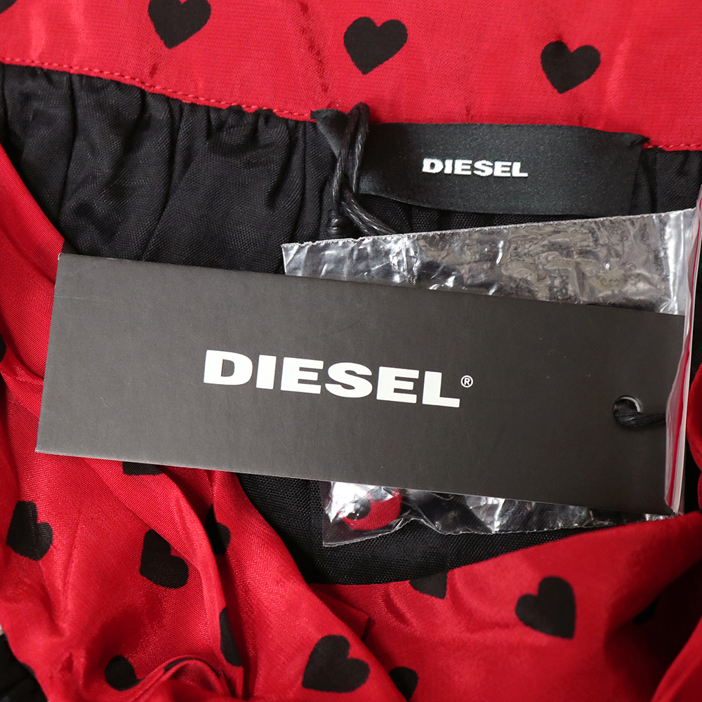 1円/春夏/DIESEL/23インチ/スカート 00SWMS-0QAPQ ドット プリント ハイウエスト フレア ひざ丈 リボン ディーゼル 新品/黒×白/kz285/