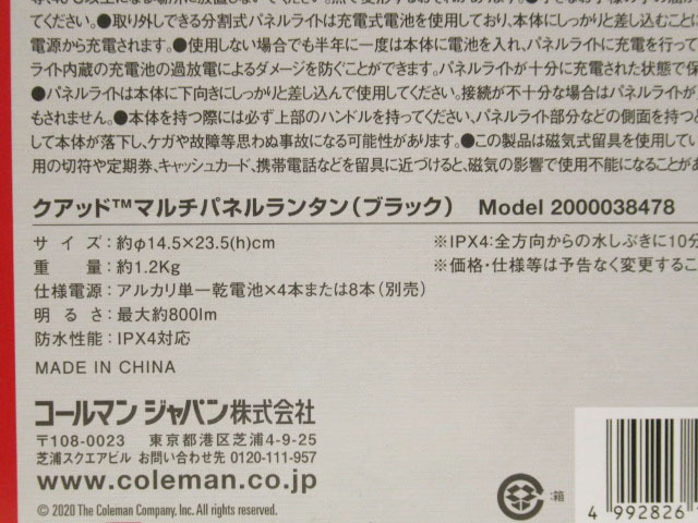 Coleman コールマン クアッドマルチパネルランタン ブラック 2000038478 2点セット ランタン キャンプ アウトドア 管理7N1010B