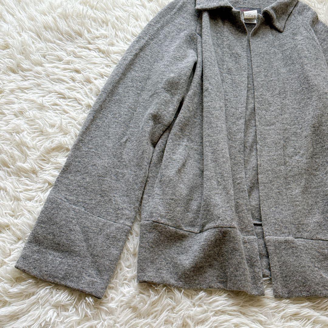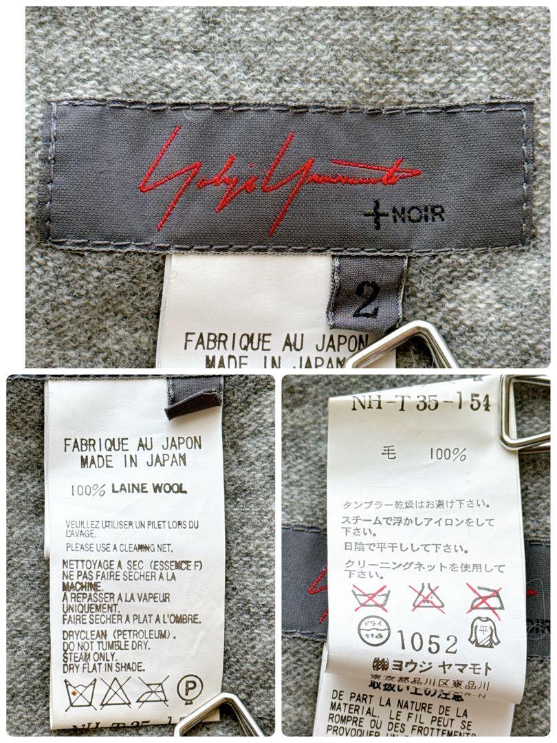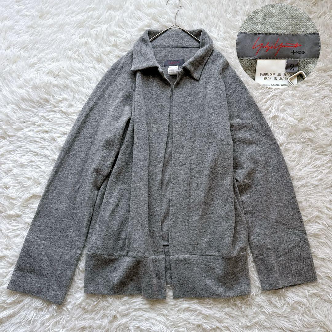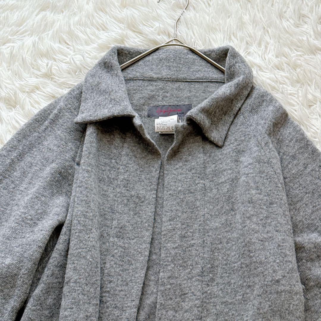 希少 Yohji Yamamoto +Noir ヨウジヤマモトプリュスノアール ガウンカーディガン ノーボタン 襟デザイン 羽織り グレー デザイナーズ
