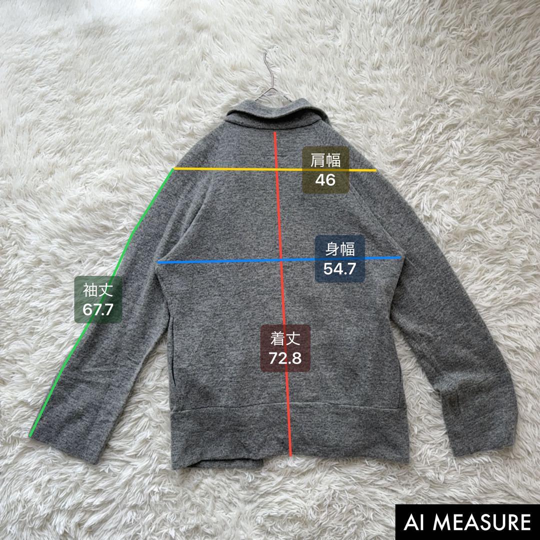 フロントに前止めはなく、ゆったりと羽織れるデザイン。特徴的な襟がコーディネートにアクセントを与え、シンプルながら存在感のあるアイテムです。