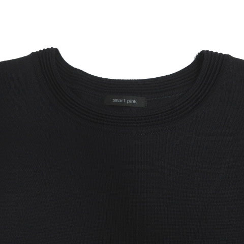 スマートピンク smart pink ニットチュニック AE606-57009JJ 長袖 日本製 ウール混 ボーダー ネイビー 紺 グレー シルバー 42