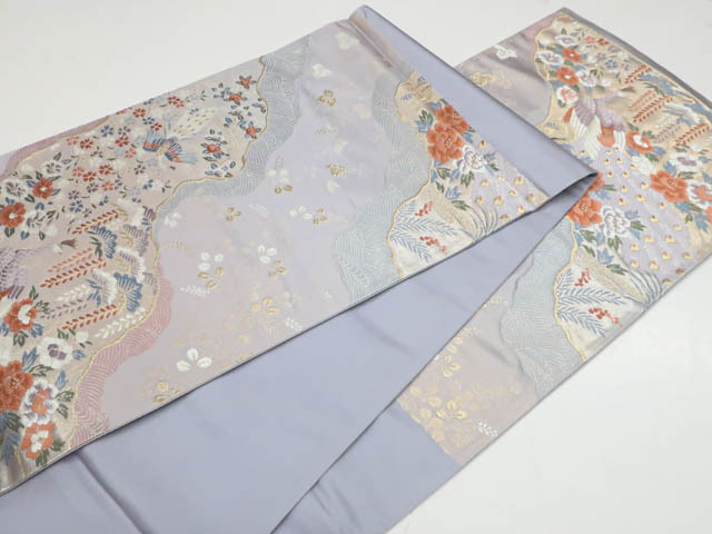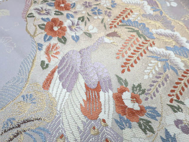 リサイクル商品ではございますが、大変良い状態のお品です。 地色は薄紫です。 1枚目の画像が近いお色かと思われます。 素材は正絹です。 |
