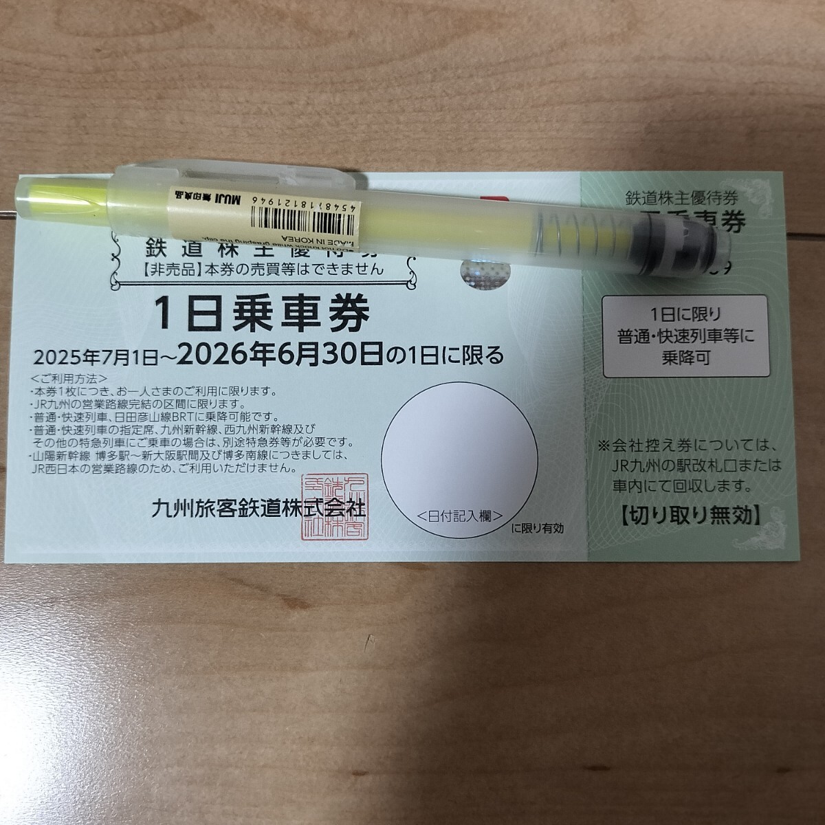 ・品名:JR九州 九州旅客鉄道 鉄道株主優待券 1日乗車券 有効期限2026年6月30日