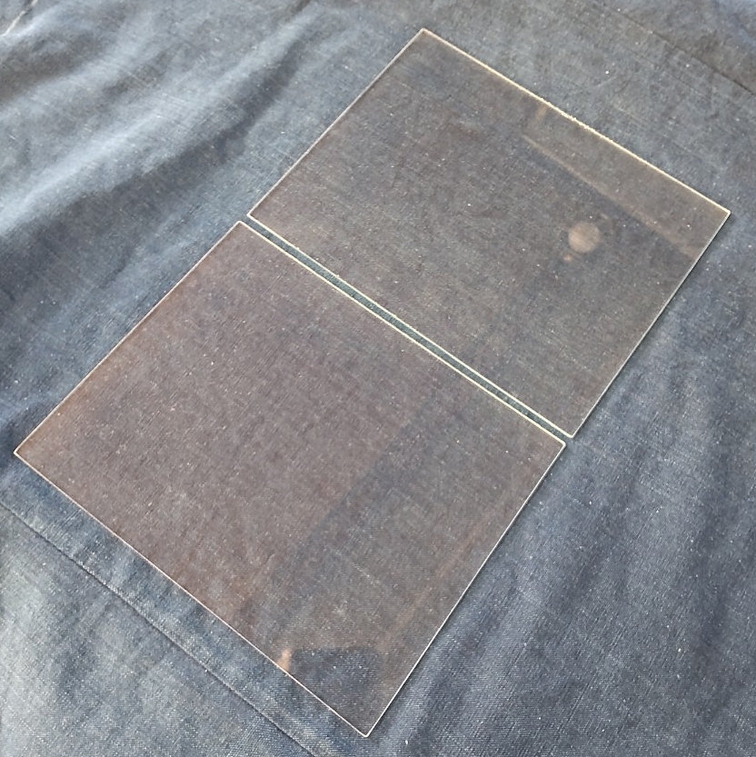 3ミリ厚(実質2.8ミリ前後)のフロートガラス(透明)を2枚の出品です。