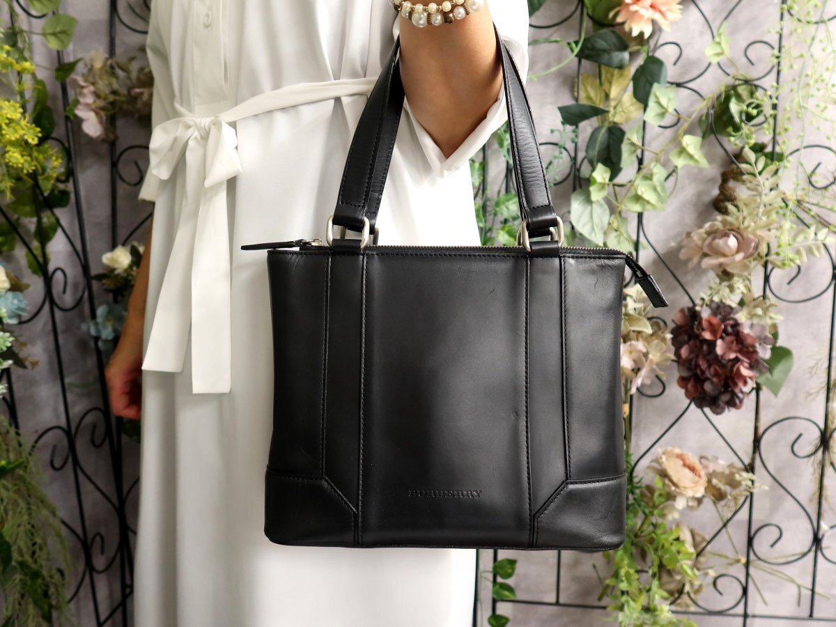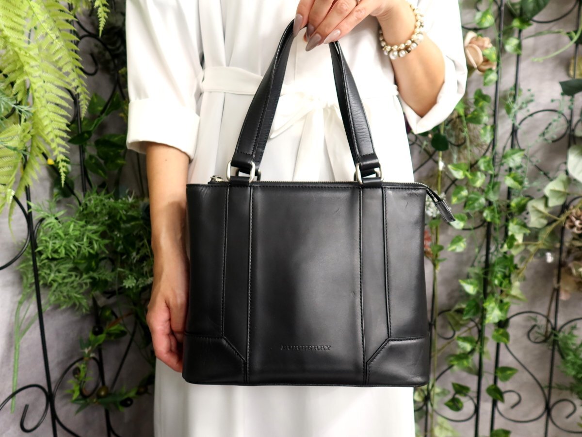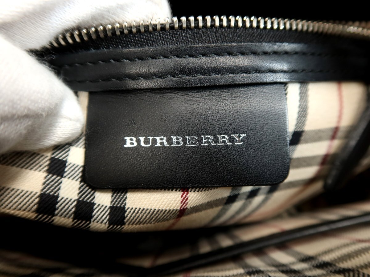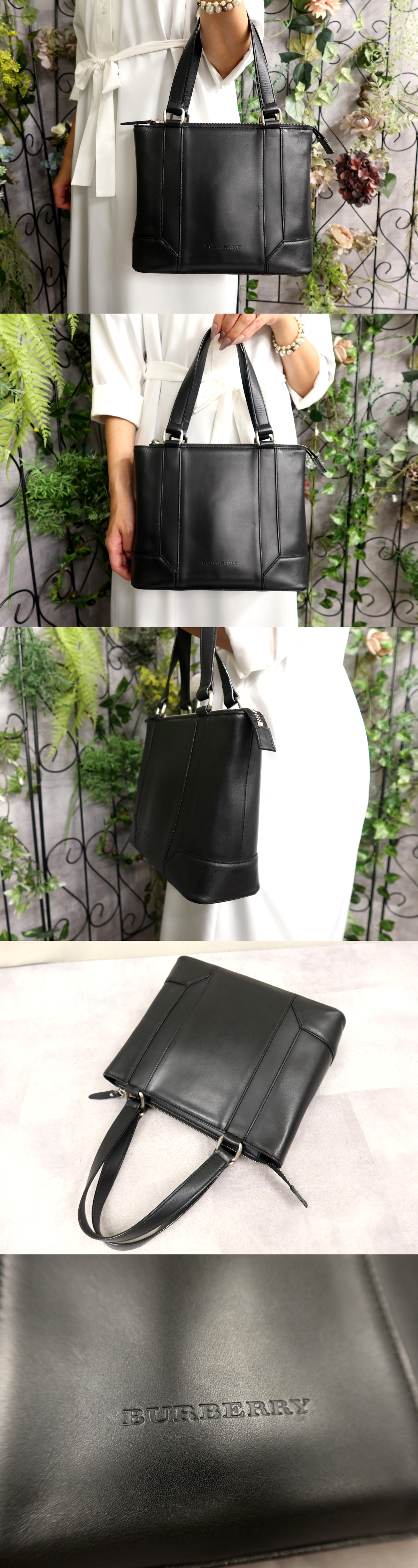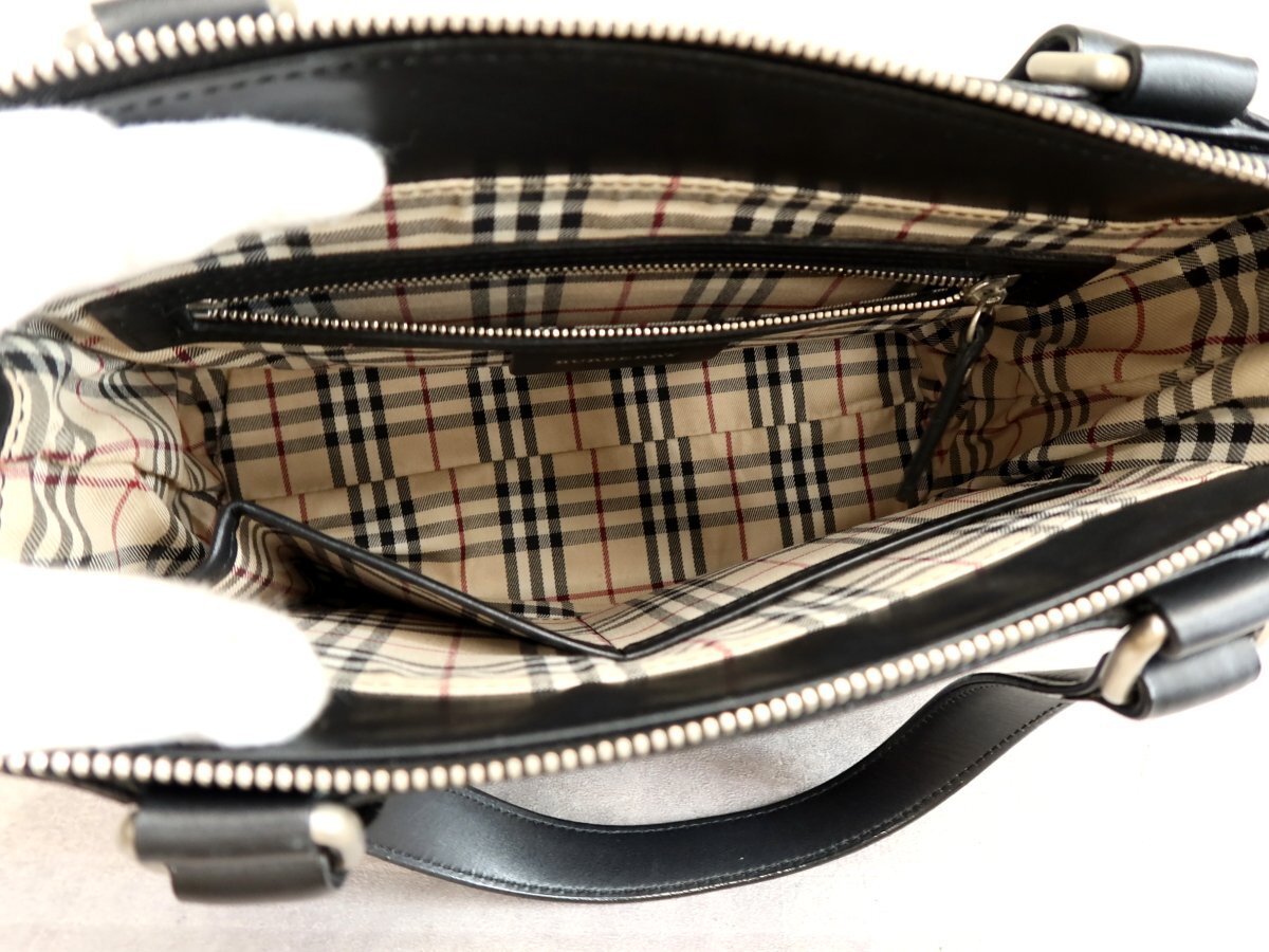 ●超美品●BURBERRY バーバリー●ロゴ型押し●内ノバチェック●カーフ レザー 本革●ハンド バッグ●黒●シルバー金具●B5 収納●Js61176