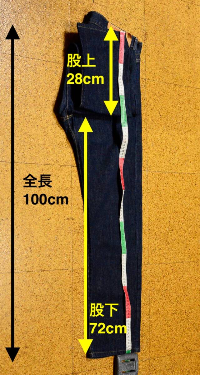 この表の中で、ウエスト○○cmとあるのは、商品のウエストの寸法になります。