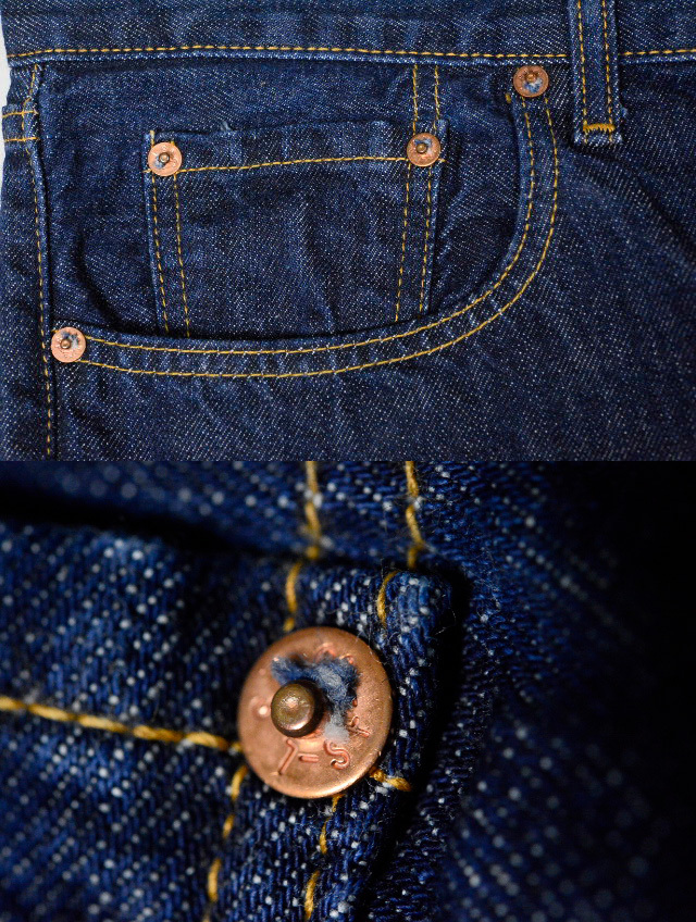 リーバイス社が古くから採用していた伝統の米国コーンミルズ社製の14oz ヘビーオンスデニムが使用されています。